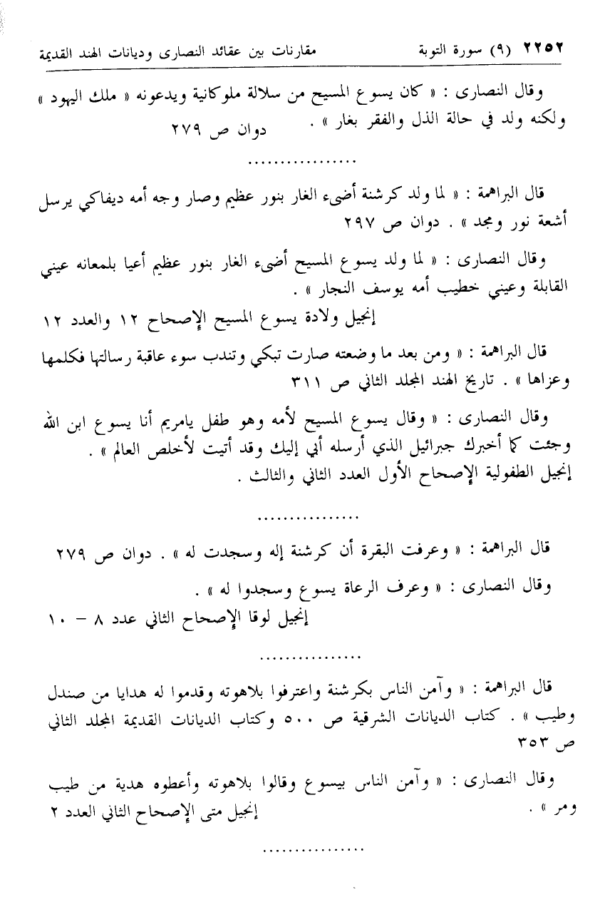 قال البراهمة: «وعرفت البقرة أن كرشنة إله وسجدت له». دوان ص 279 وقال النصارى: «وعرف الرعاة يسوع وسجدوا له».