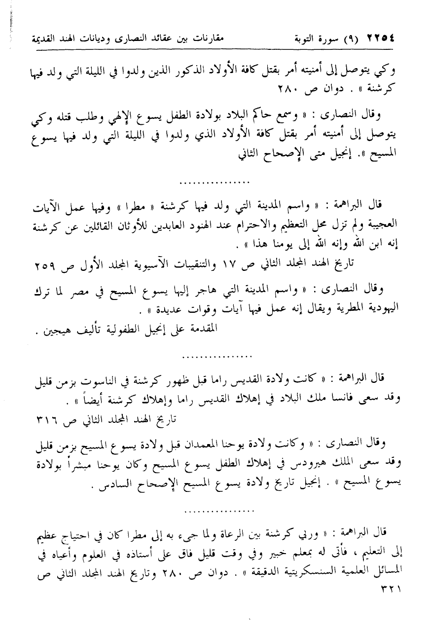 قال البراهمة: «واسم المدينة التي ولد فيها كرشنة «مطرا» وفيها عمل الآيات العجيبة ولم تزل محل التعظيم والاحترام عند الهنود العابدين للأوثان القائلين عن كرشنة إنه ابن الله وإنه الله إلى يومنا هذا».