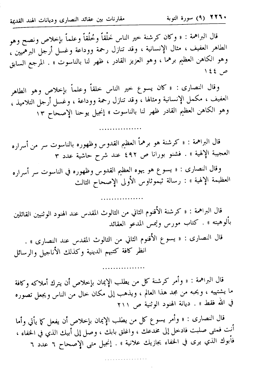 قال البراهمة: «كرشنة هو برهما العظيم القدوس وظهوره بالناسوت سر من أسراره العجيبة الإلهية». فشنو بورانا ص 492 عند شرح حاشية عدد 3