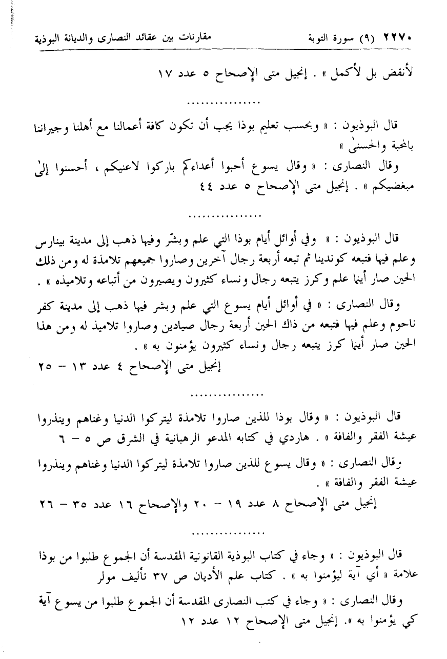 قال البوذيون: «وقال بوذا للذين صاروا تلامذة ليتركوا الدنيا وغناهم وينذروا عيشة الفقر والفاقة». هاردي في كتابه المدعو الرهبانية في الشرق ص 5 - 6