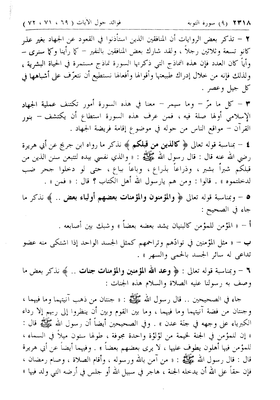 5 - وبمناسبة قوله تعالى وَالْمُؤْمِنُونَ وَالْمُؤْمِناتُ بَعْضُهُمْ أَوْلِياءُ بَعْضٍ .. نذكر ما جاء في الصحيح:
