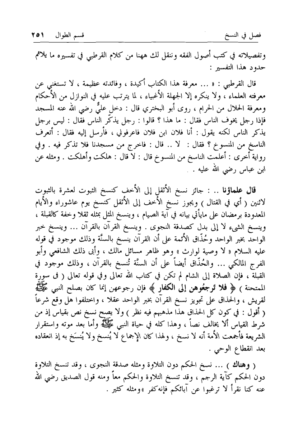 وتفصيلاته في كتب أصول الفقه وننقل لك هاهنا من كلام القرطبي في تفسيره ما يلائم حدود هذا التفسير: