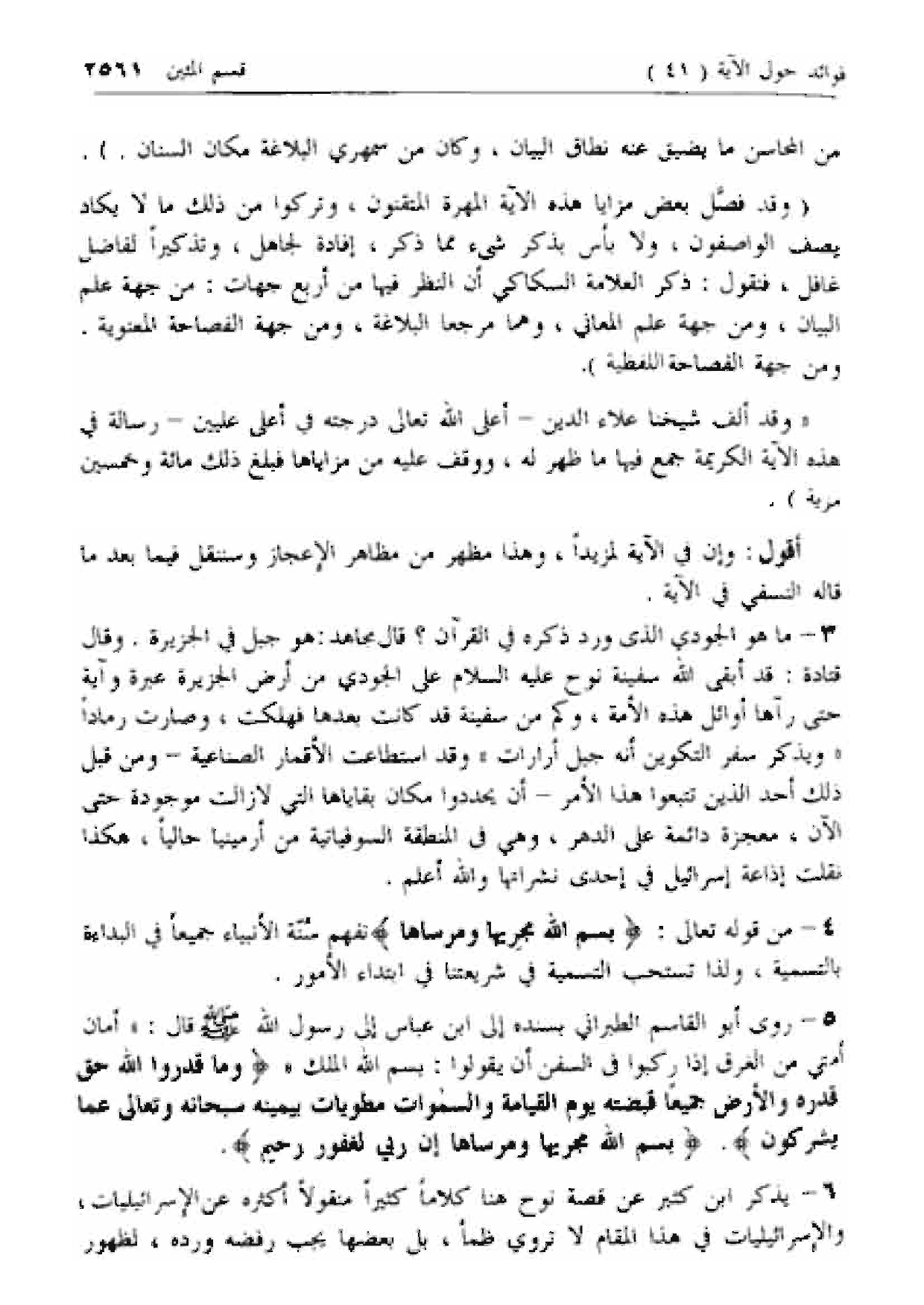 4 - من قوله تعالى: بِسْمِ اللَّهِ مَجْراها وَمُرْساها نفهم سنة الأنبياء جميعا في البداءة بالتسمية، ولذا تستحب التسمية في شريعتنا في ابتداء الأمور.