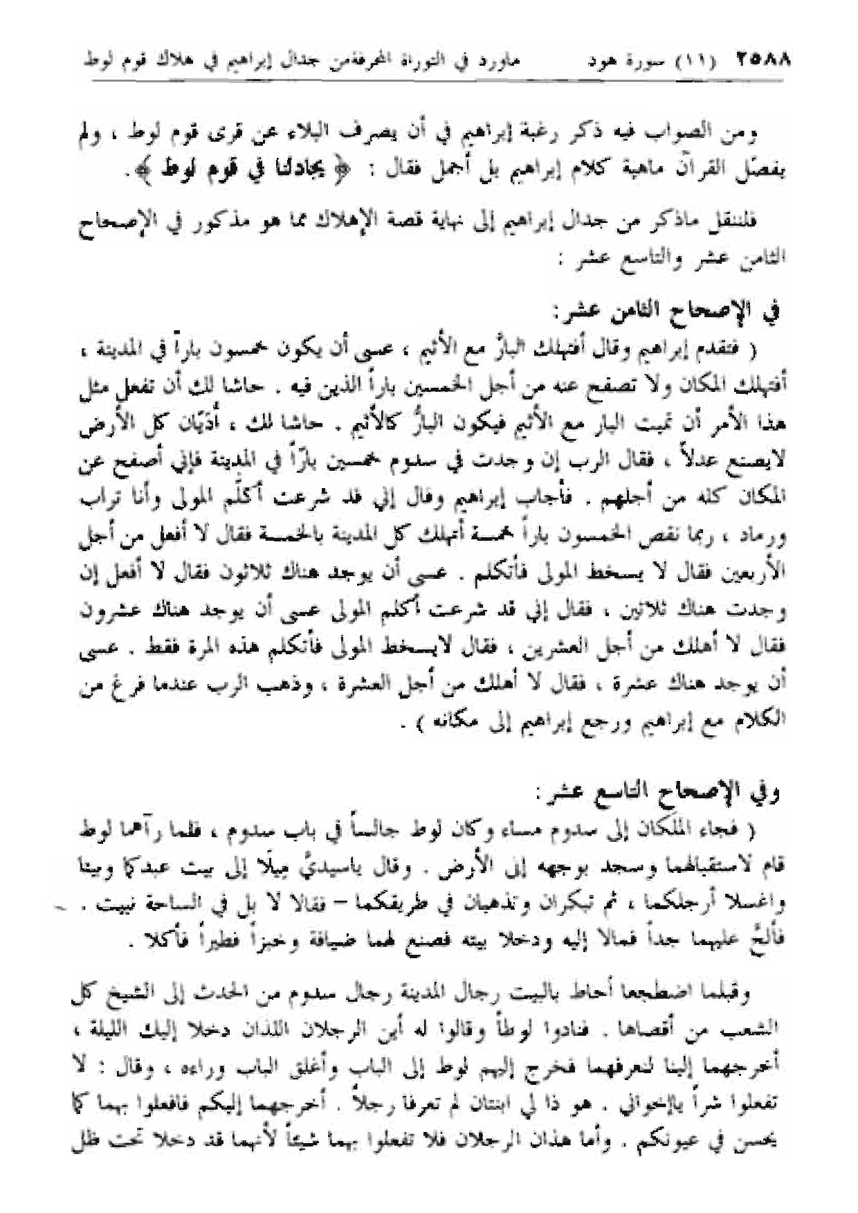 فلننقل ما ذكر من جدال إبراهيم إلى نهاية قصة الإهلاك مما هو مذكور في الإصحاح الثامن عشر والتاسع عشر: