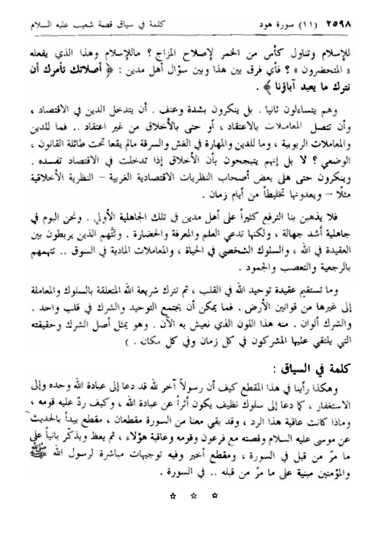 فلا يذهبن بنا الترفع كثيرا على أهل مدين في تلك الجاهلية الأولي. ونحن اليوم في جاهلية أشد جهالة، ولكنها تدعي العلم والمعرفة والحضارة. وتتهم الذين يربطون بين العقيدة في الله، والسلوك الشخصي في الحياة، والمعاملات المادية في السوق .. تتهمهم بالرجعية والتعصب والجمود.