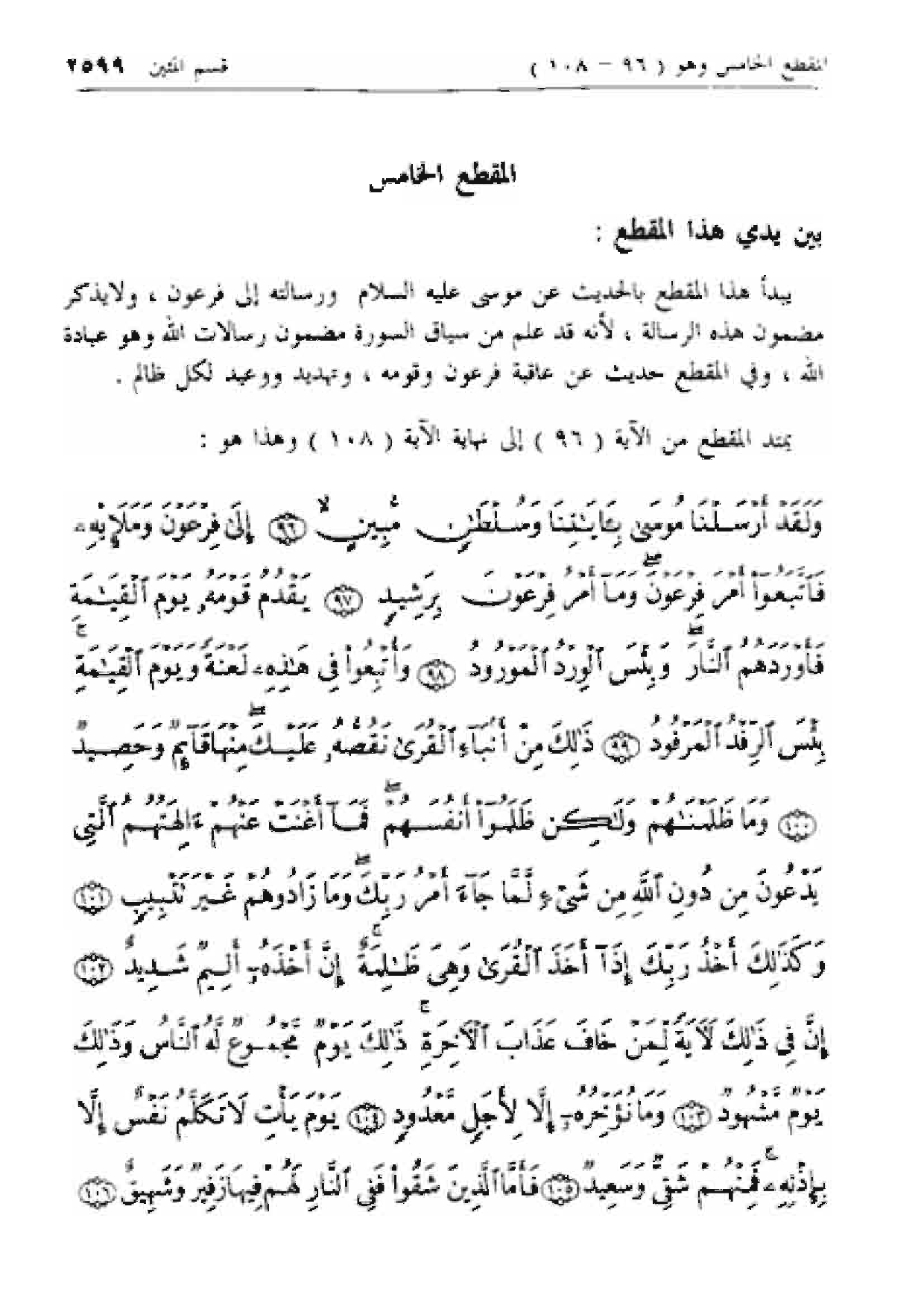يمتد المقطع من الآية (96) إلى نهاية الآية (108) وهذا هو: