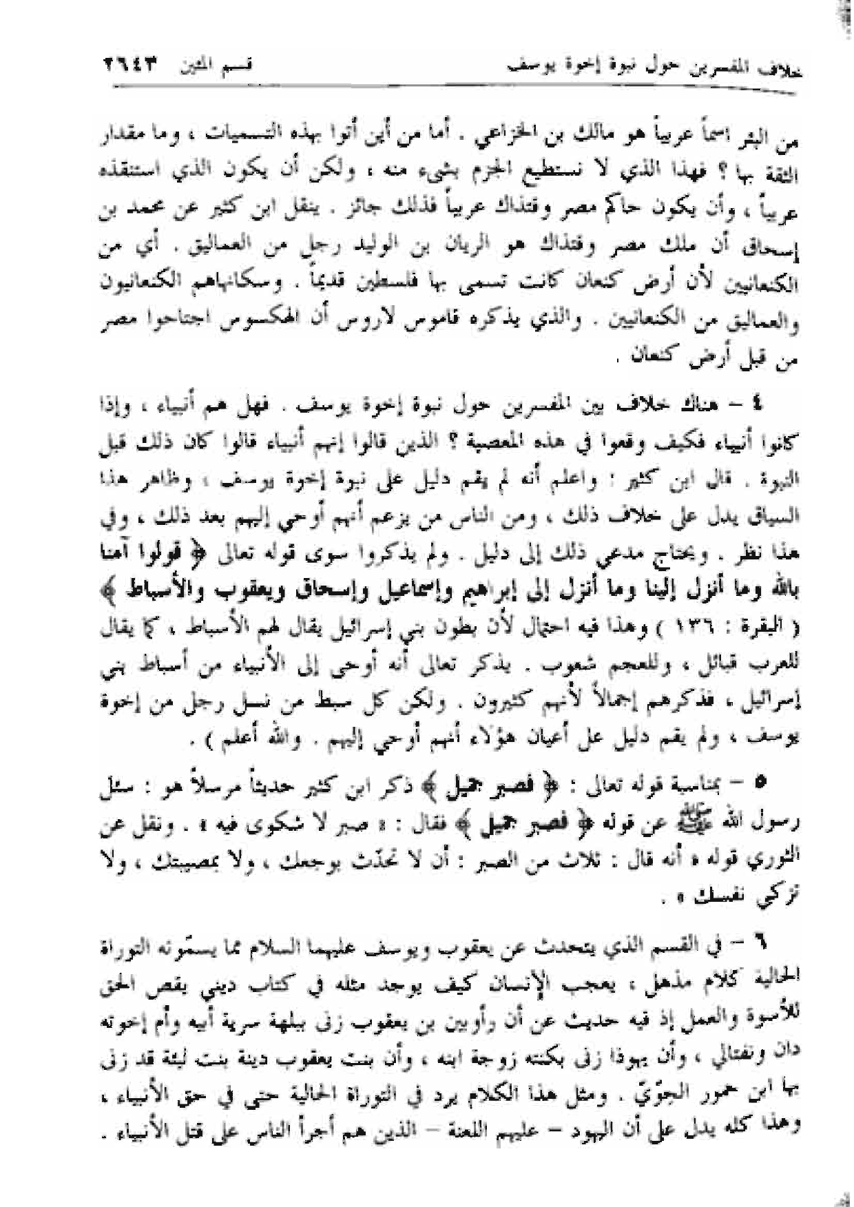 4 - هناك خلاف بين المفسرين حول نبوة إخوة يوسف. فهل هم أنبياء، وإذا كانوا أنبياء فكيف وقعوا في هذه المعصية؟ الذين قالوا إنهم أنبياء قالوا كان ذلك قبل النبوة. قال ابن كثير: واعلم أنه لم يقم دليل على نبوة إخوة يوسف، وظاهر هذا السياق يدل على خلاف ذلك، ومن الناس من يزعم أنهم أوحي إليهم بعد ذلك، وفي هذا نظر. ويحتاج مدعي ذلك إلى دليل. ولم يذكروا سوى قوله تعالى قُولُوا آمَنَّا بِاللَّهِ وَما أُنْزِلَ إِلَيْنا وَما أُنْزِلَ إِلى إِبْراهِيمَ وَإِسْماعِيلَ وَإِسْحاقَ وَيَعْقُوبَ وَالْأَسْباطِ (البقرة: 136) وهذا فيه احتمال لأن بطون بني إسرائيل يقال لهم الأسباط، كما يقال للعرب قبائل، وللعجم شعوب. يذكر تعالى أنه أوحى إلى الأنبياء من أسباط بني إسرائيل، فذكرهم إجمالا لأنهم كثيرون. ولكن كل سبط من نسل رجل من إخوة يوسف، ولم يقم دليل على أعيان هؤلاء أنهم أوحي إليهم. والله أعلم).