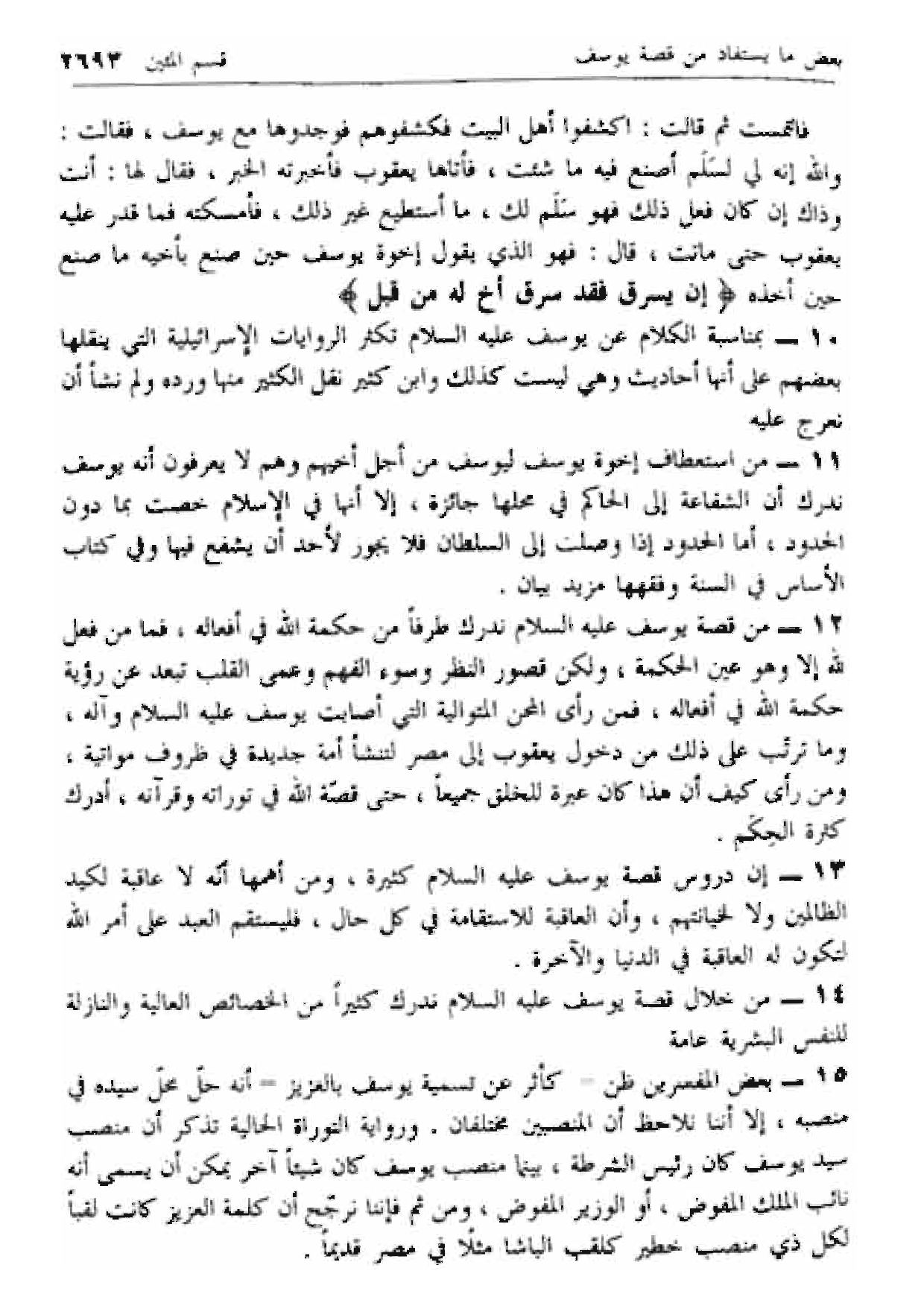 10 - بمناسبة الكلام عن يوسف عليه السلام تكثر الروايات الإسرائيلية التي ينقلها بعضهم على أنها أحاديث وهي ليست كذلك وابن كثير نقل الكثير منها ورده ولم نشأ أن نعرج عليه