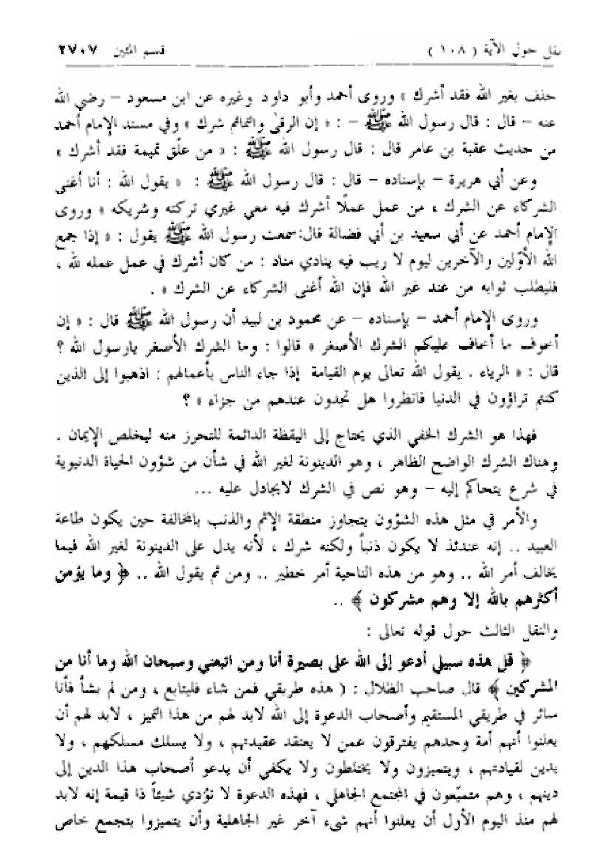 قُلْ هذِهِ سَبِيلِي أَدْعُوا إِلَى اللَّهِ عَلى بَصِيرَةٍ أَنَا وَمَنِ اتَّبَعَنِي وَسُبْحانَ اللَّهِ وَما أَنَا مِنَ الْمُشْرِكِينَ قال صاحب الظلال: (هذه طريقي فمن شاء فليتابع، ومن لم يشأ فأنا سائر