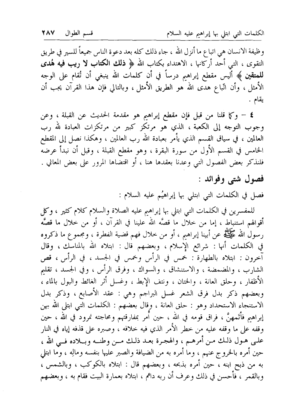 فصل في الكلمات التي ابتلي بها إبراهيم عليه السلام: