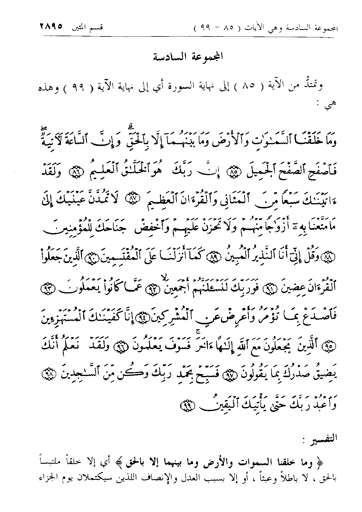 المجموعة السادسة وتمتدّ من الآية (85) إلى نهاية السورة أي إلى نهاية الآية (99) وهذه هي: