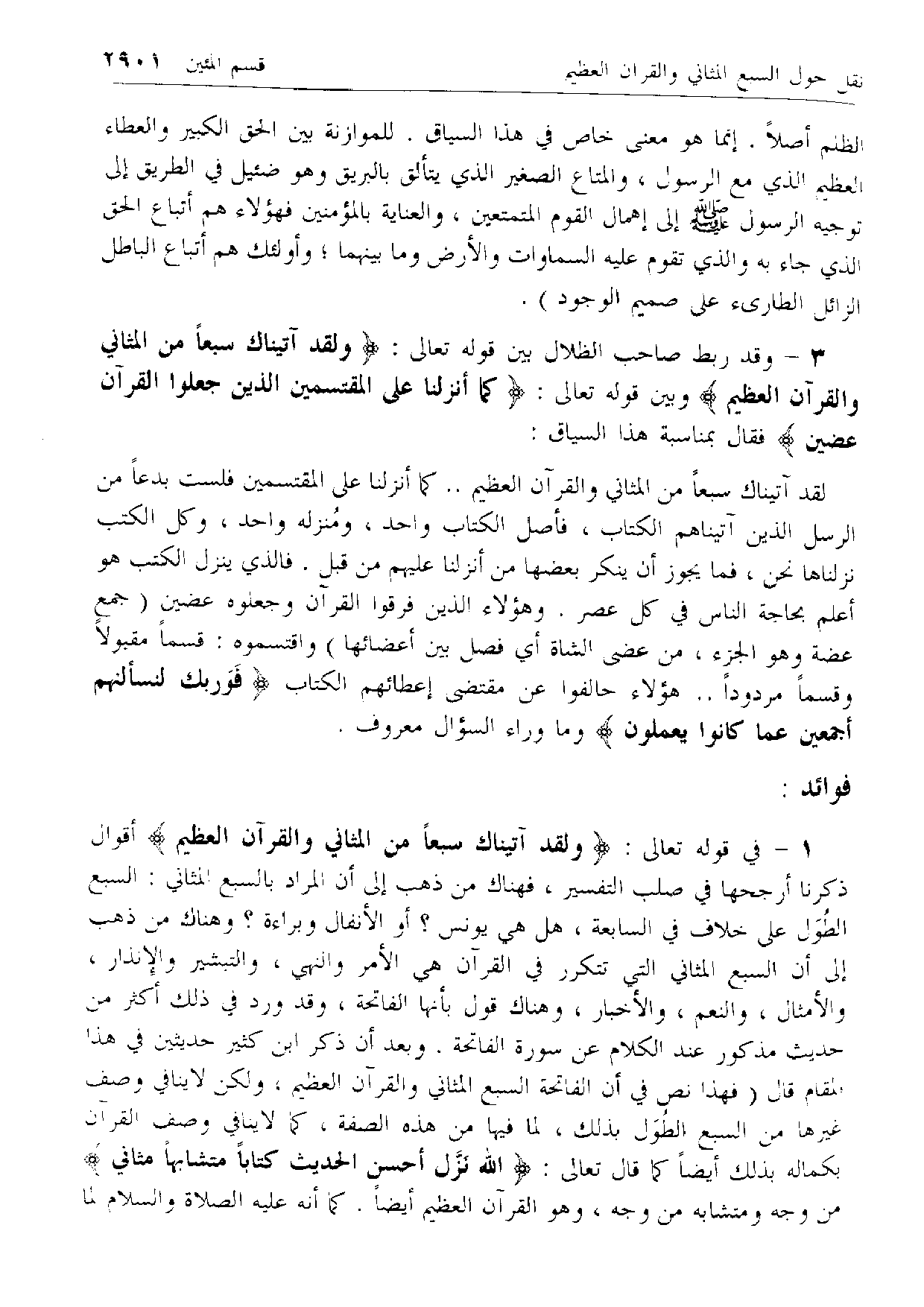 1 - [حول ما قيل في السبع المثاني بمناسبة آية وَلَقَدْ آتَيْناكَ سَبْعاً مِنَ الْمَثانِي .. ]