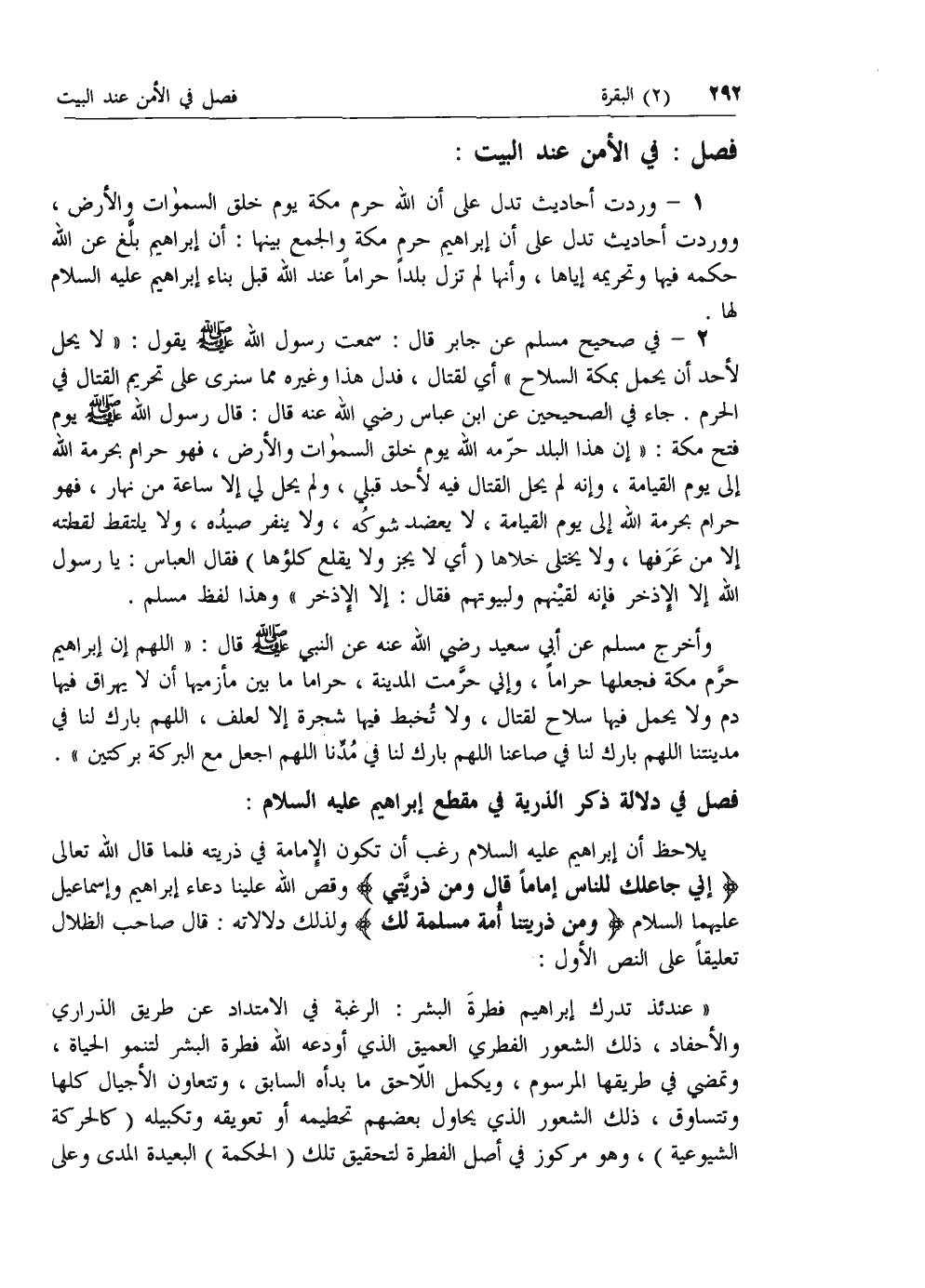 يلاحظ أن إبراهيم عليه السلام رغب أن تكون الإمامة في ذريته فلما قال الله تعالى إِنِّي جاعِلُكَ لِلنَّاسِ إِماماً قالَ وَمِنْ ذُرِّيَّتِي وقص الله علينا دعاء إبراهيم وإسماعيل عليهما السلام وَمِنْ ذُرِّيَّتِنا أُمَّةً مُسْلِمَةً لَكَ ولذلك دلالاته: قال صاحب الظلال تعليقا على النص الأول:
