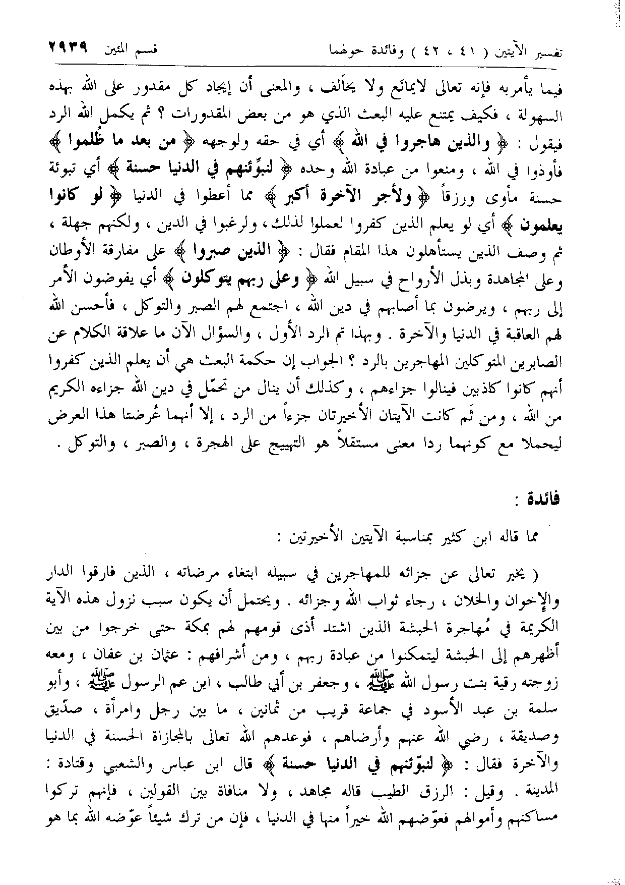 فائدة: [كلام ابن كثير حول الآية وَالَّذِينَ هاجَرُوا فِي اللَّهِ .. والتي تليها]