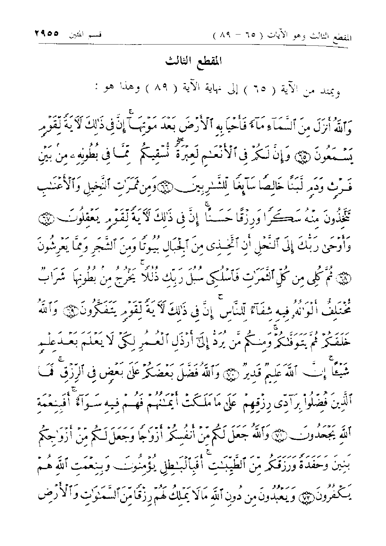 المقطع الثالث ويمتد من الآية (65) إلى نهاية الآية (89) وهذا هو: