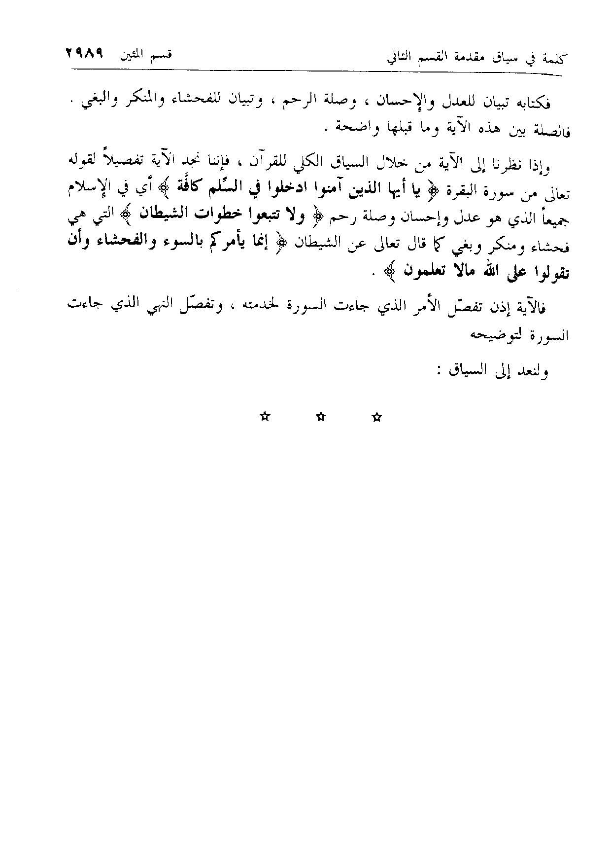 فكتابه تبيان للعدل والإحسان، وصلة الرحم، وتبيان للفحشاء والمنكر والبغي.