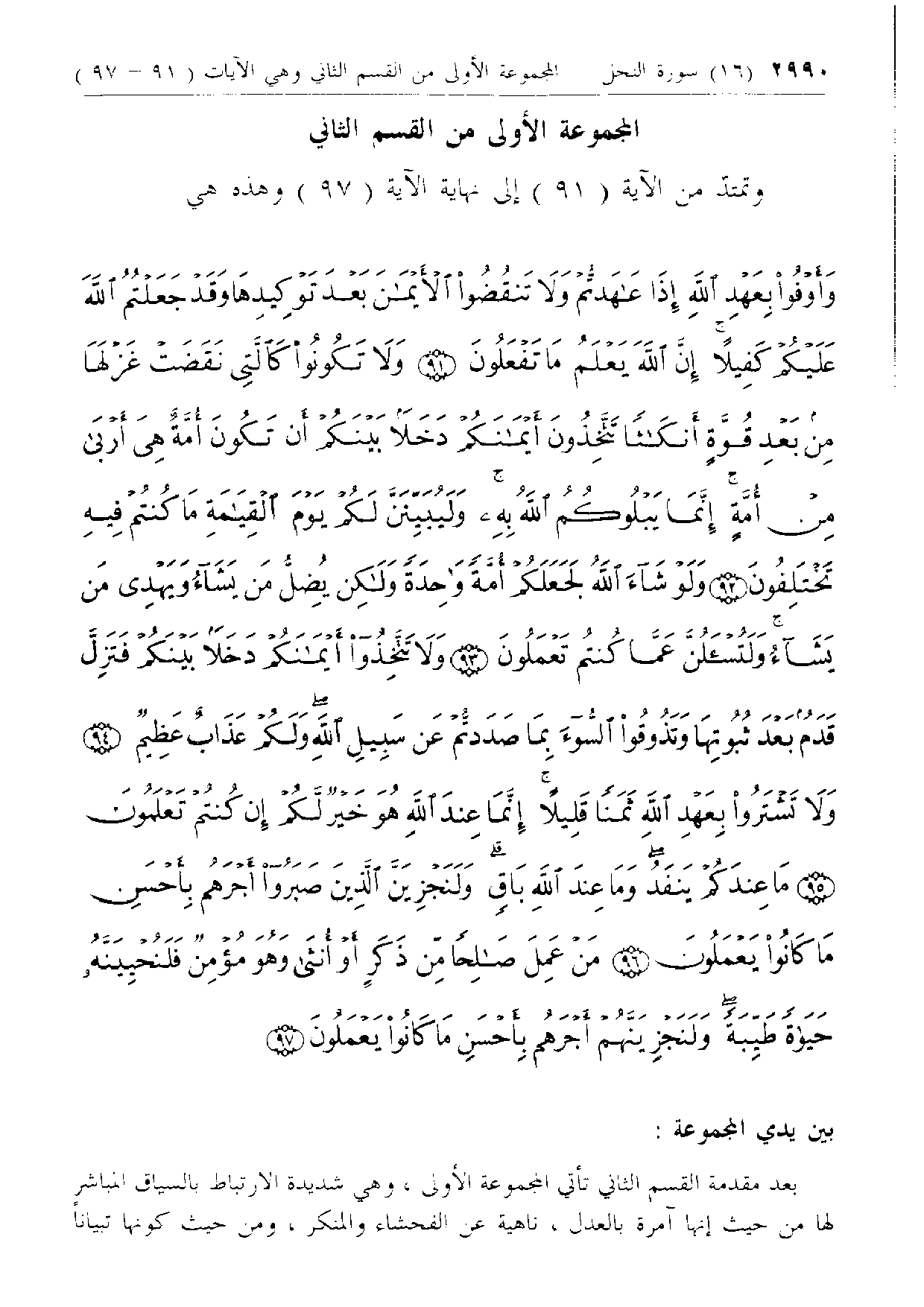 المجموعة الأولى من القسم الثاني وتمتدّ من الآية (91) إلى نهاية الآية (97) وهذه هي: