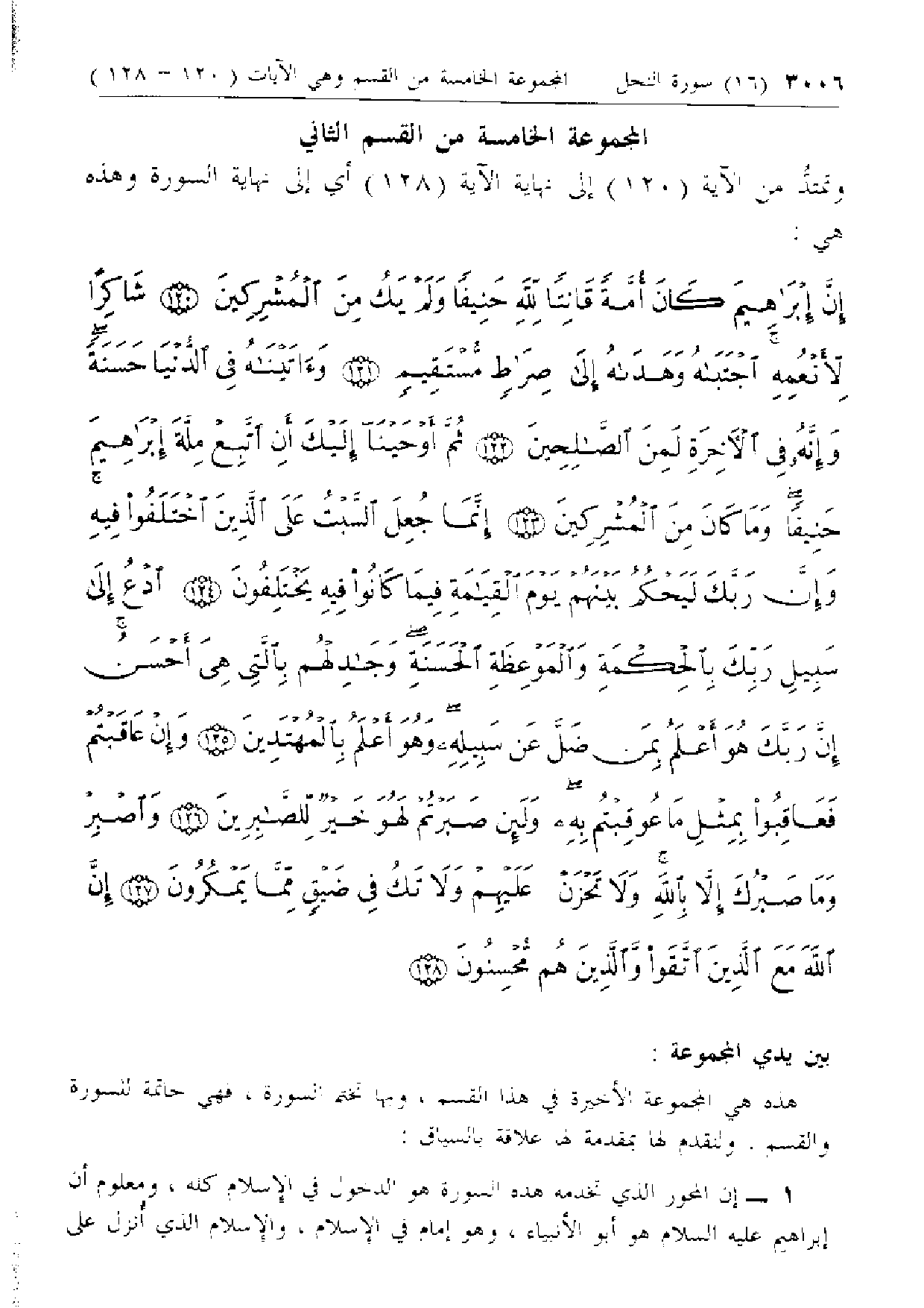 المجموعة الخامسة من القسم الثاني وتمتدّ من الآية (120) إلى نهاية الآية (128) أي إلى نهاية السورة وهذه هي: