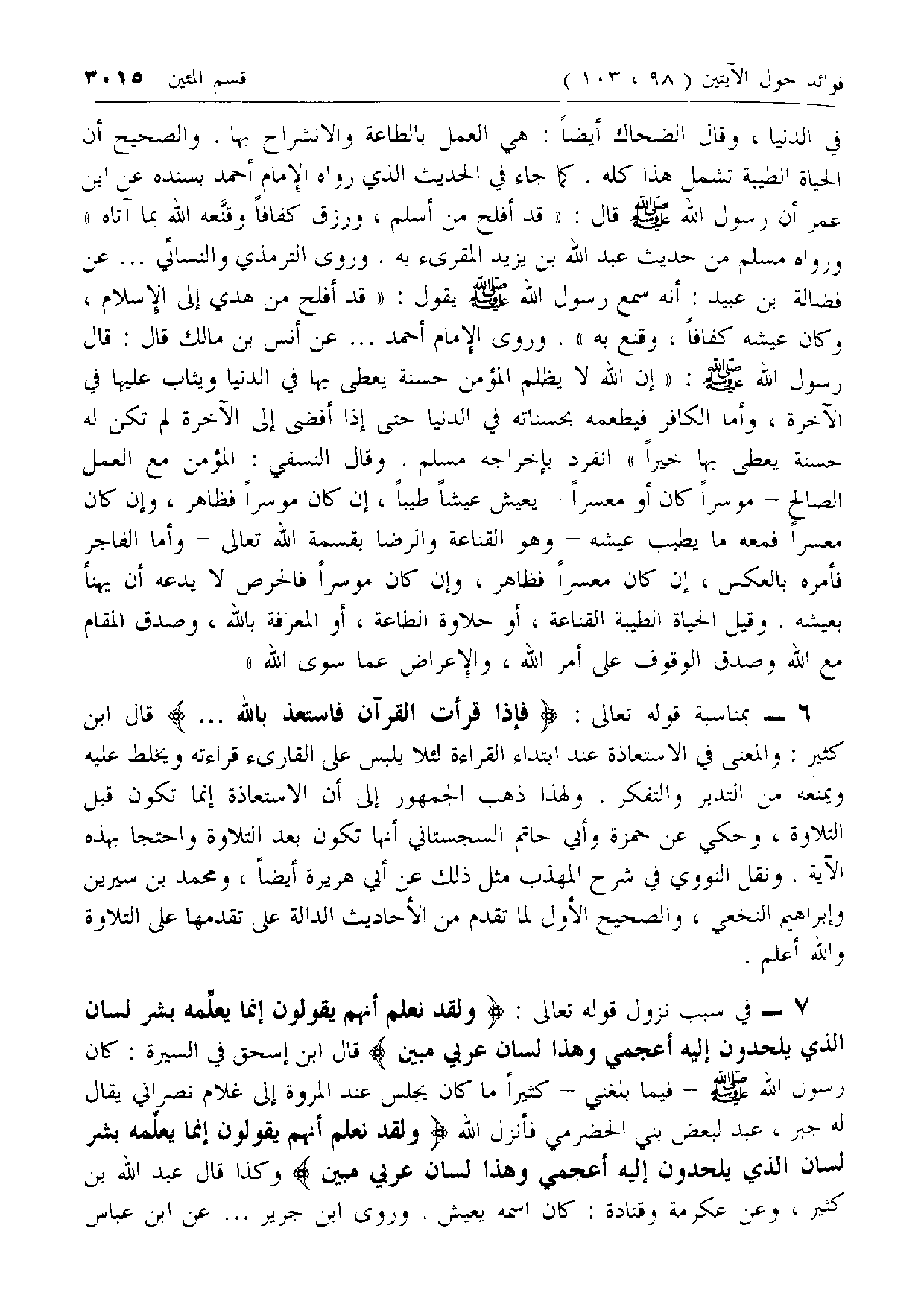6 - [كلام ابن كثير حول معنى الاستعاذة في الآية فَإِذا قَرَأْتَ الْقُرْآنَ فَاسْتَعِذْ بِاللَّهِ]