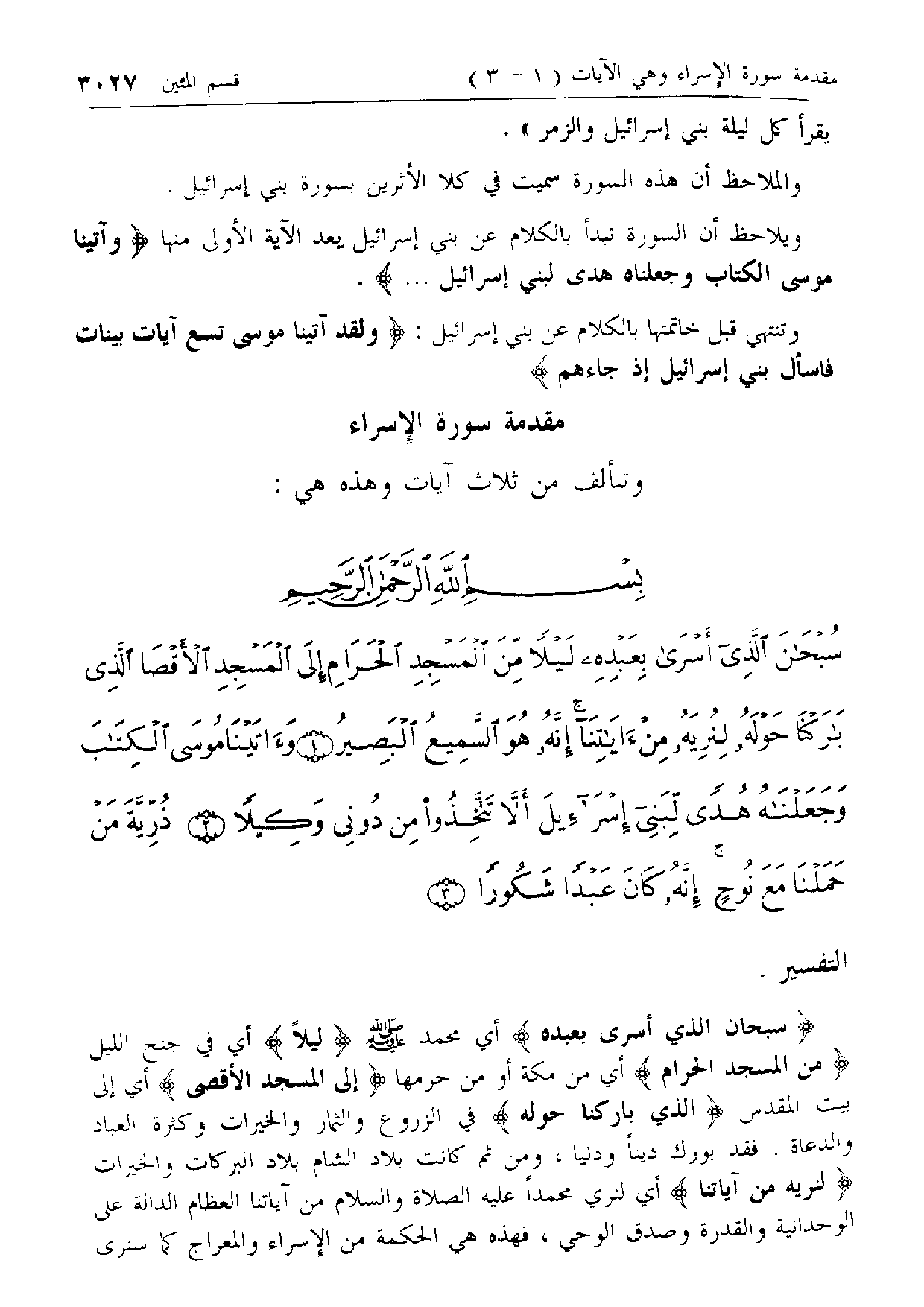 مقدمة سورة الإسراء وتتألف من ثلاث آيات وهذه هي: