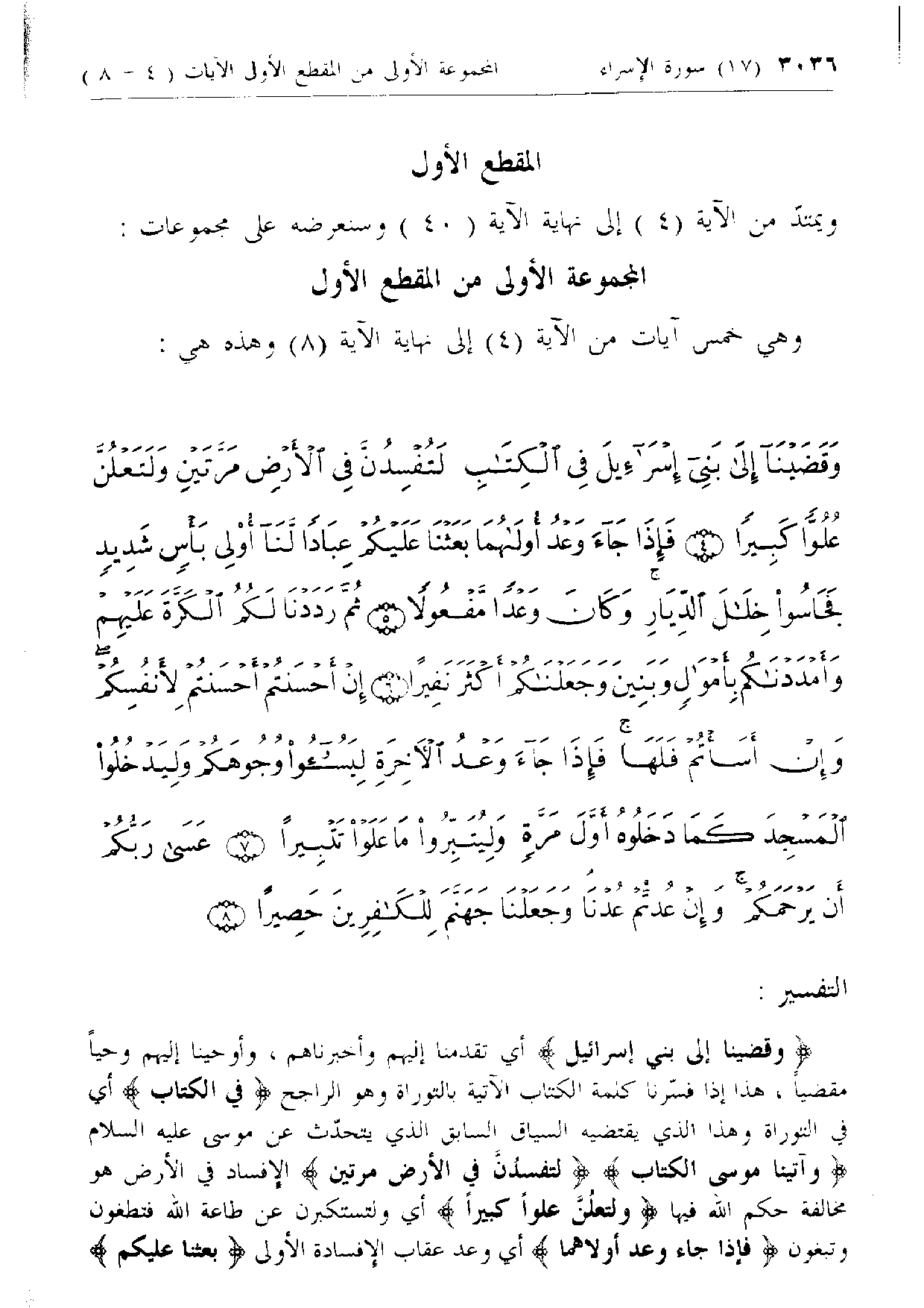 المجموعة الأولى من المقطع الأول وهي خمس آيات من الآية (4) إلى نهاية الآية (8) وهذه هي: