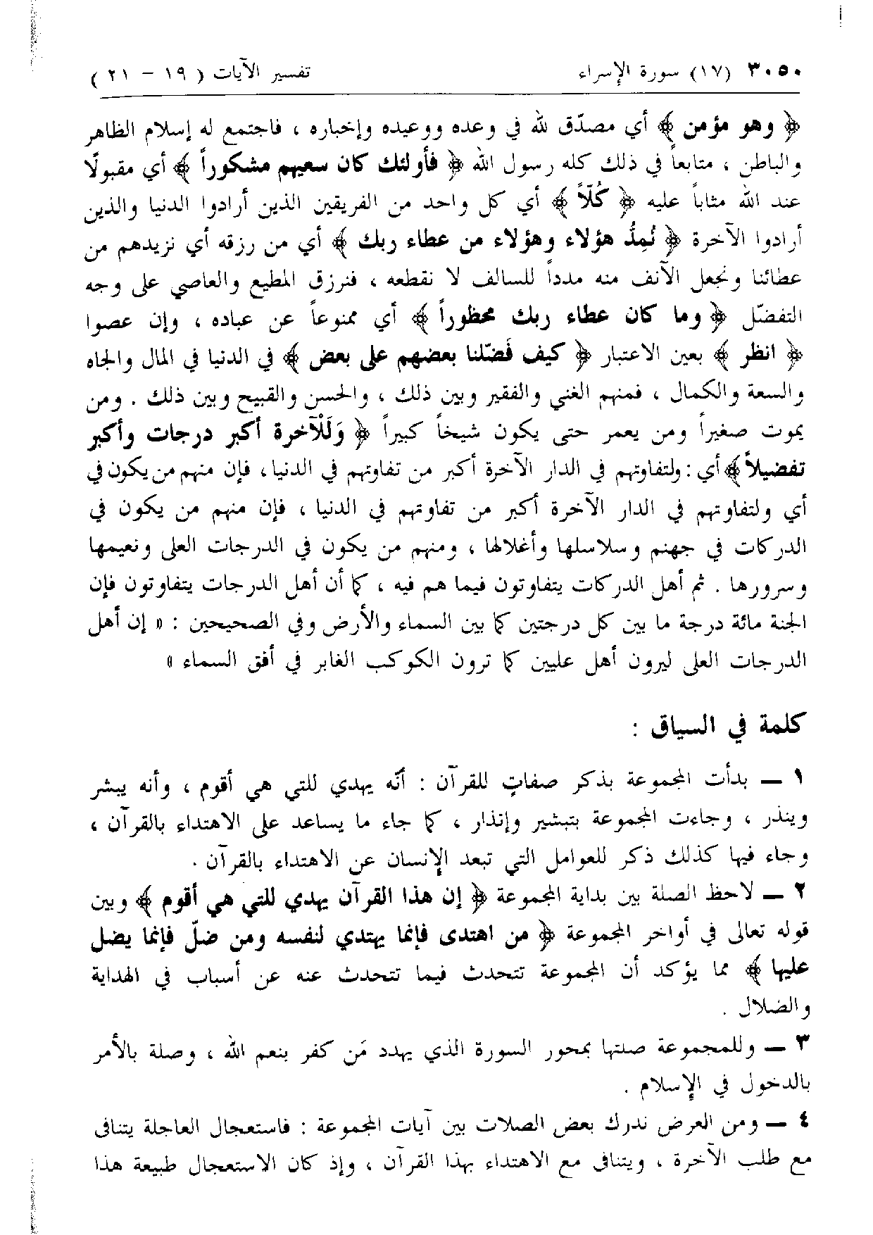 4 - ومن العرض ندرك بعض الصلات بين آيات المجموعة: فاستعجال العاجلة يتنافى مع طلب الآخرة، ويتنافى مع الاهتداء بهذا القرآن، وإذ كان الاستعجال طبيعة هذا