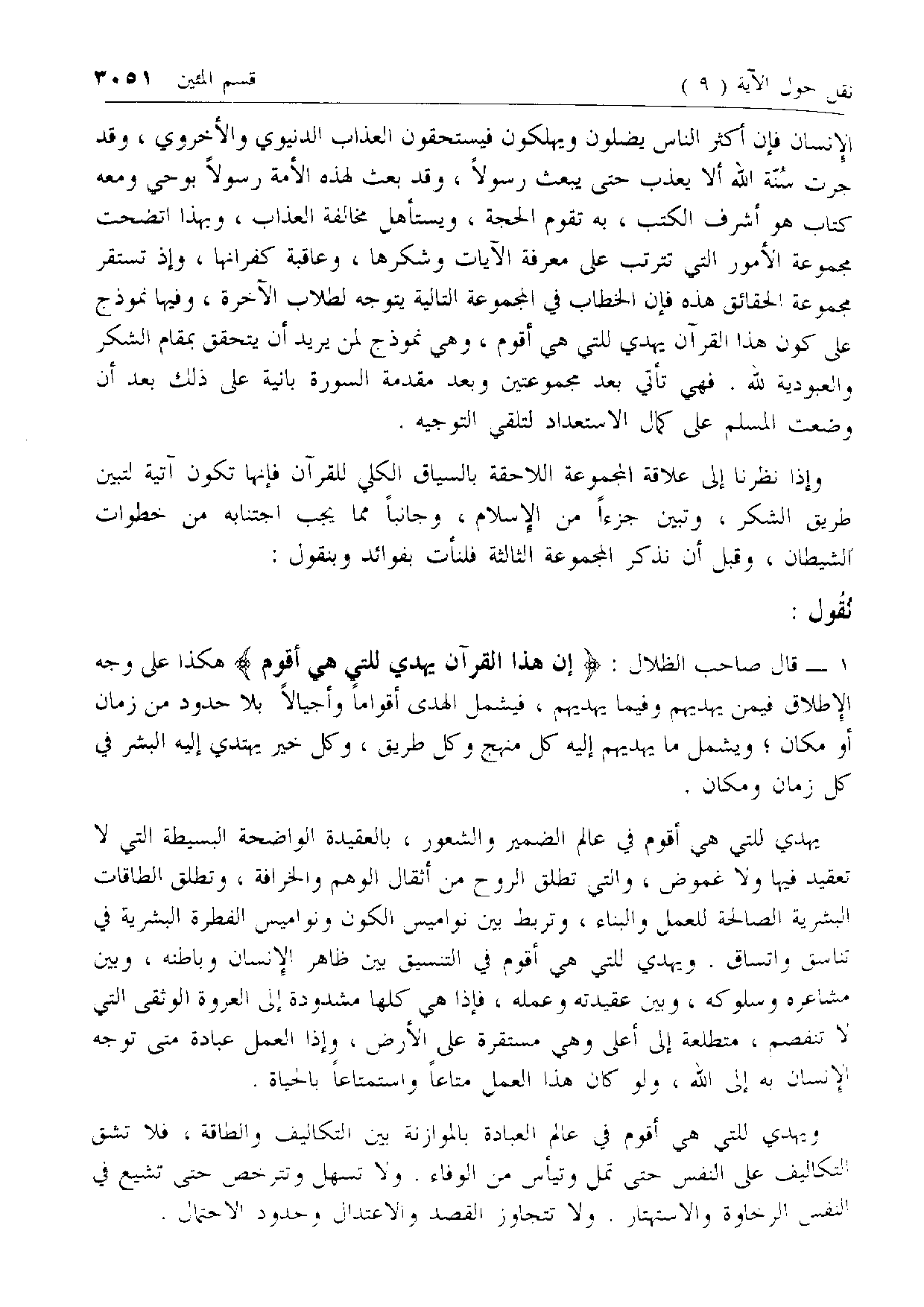 1 - [كلام صاحب الظلال عند الآية إِنَّ هذَا الْقُرْآنَ يَهْدِي لِلَّتِي هِيَ أَقْوَمُ]