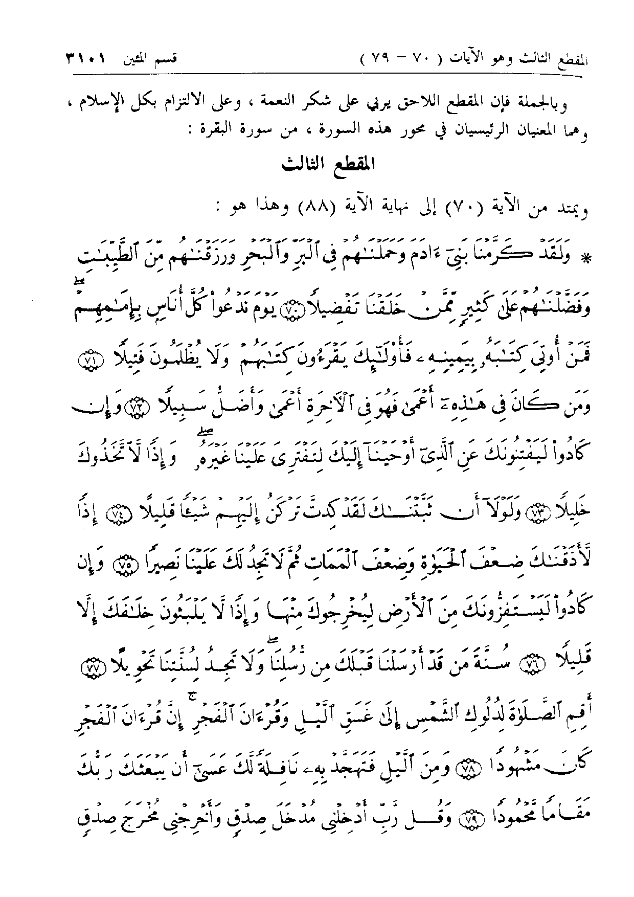 المقطع الثالث ويمتد من الآية (70) إلى نهاية الآية (88) وهذا هو: