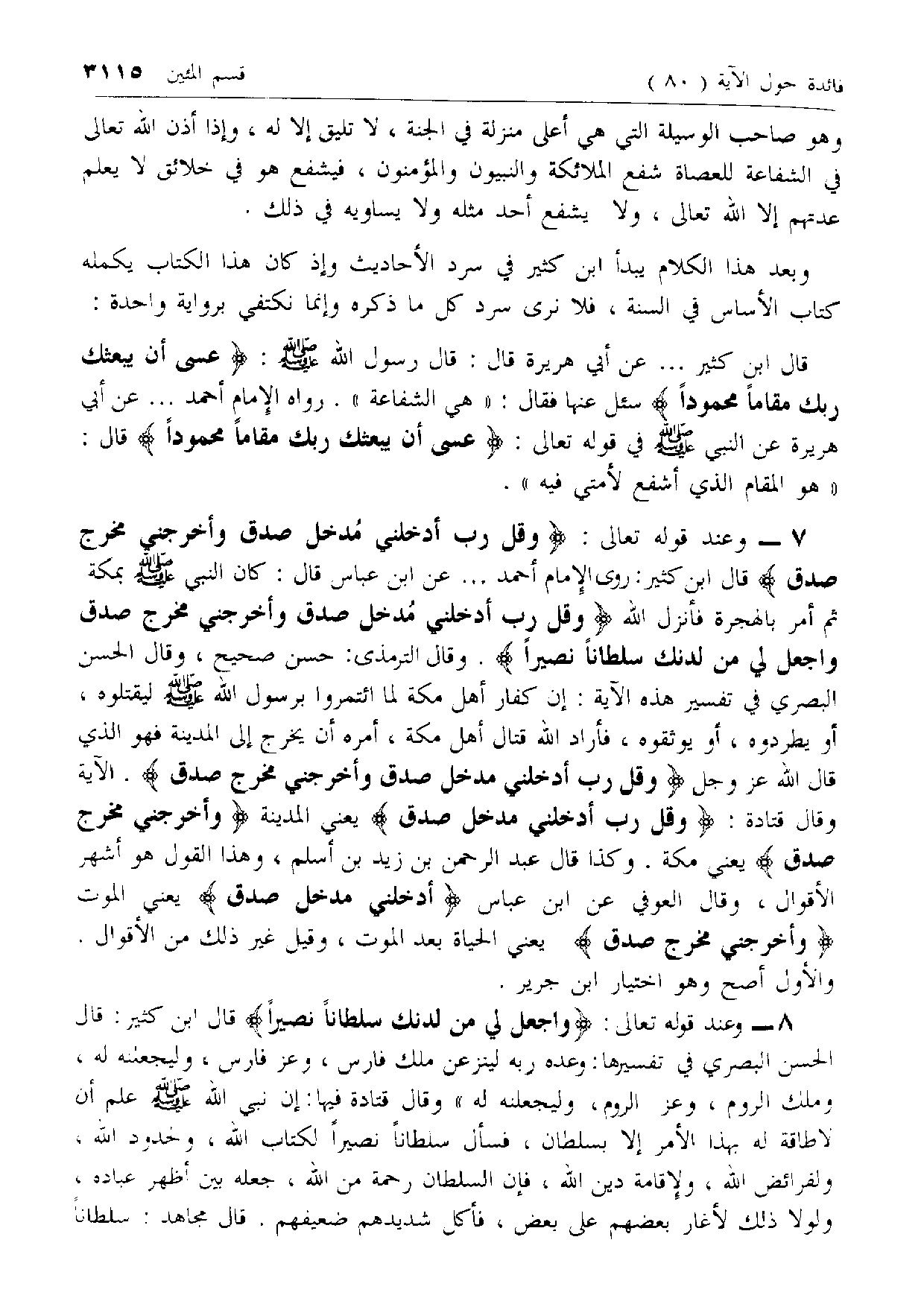 8 - [كلام ابن كثير بمناسبة قوله تعالى وَاجْعَلْ لِي مِنْ لَدُنْكَ سُلْطاناً نَصِيراً]