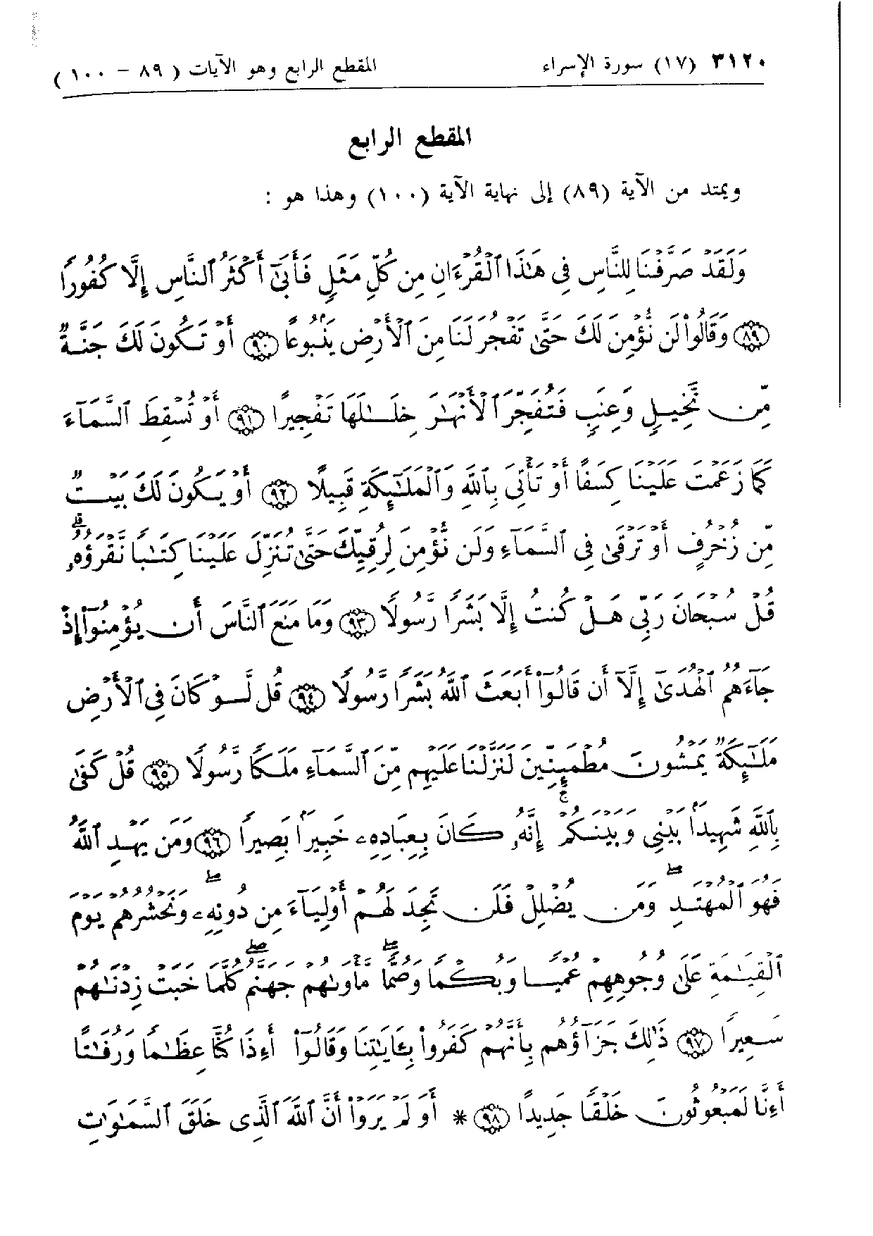 المقطع الرابع ويمتد من الآية (89) إلى نهاية الآية (100) وهذا هو: