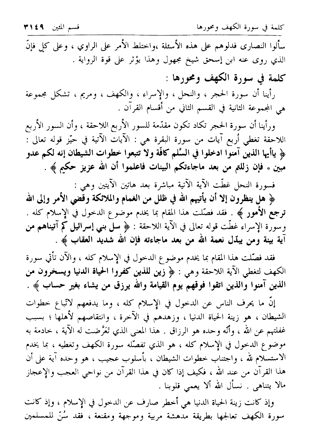 وإذ كانت زينة الحياة الدنيا هي أخطر صارف عن الدخول في الإسلام، وإذ كانت سورة الكهف تعالجها بطريقة مدهشة مربية وموجهة ومقنعة، فقد سنّ للمسلمين