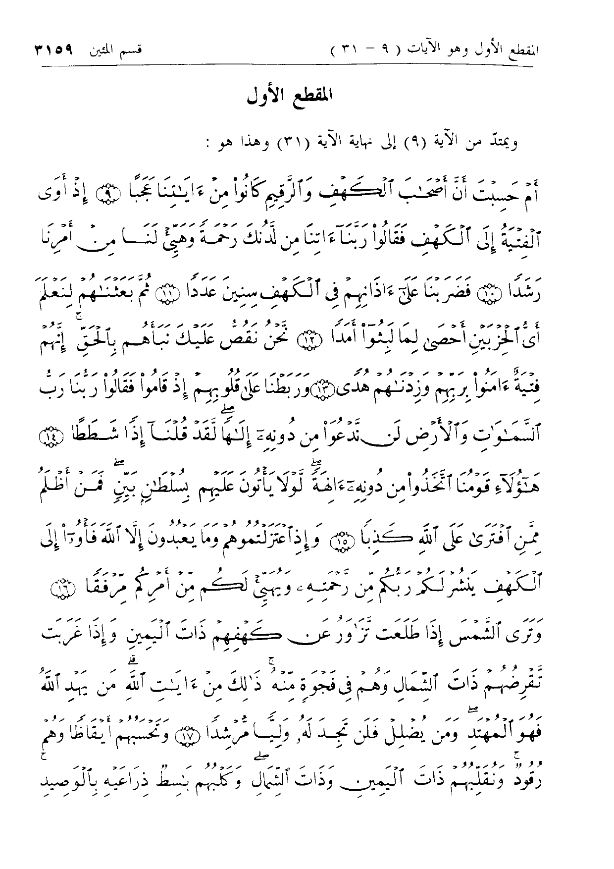المقطع الأول ويمتدّ من الآية (9) إلى نهاية الآية (31) وهذا هو: