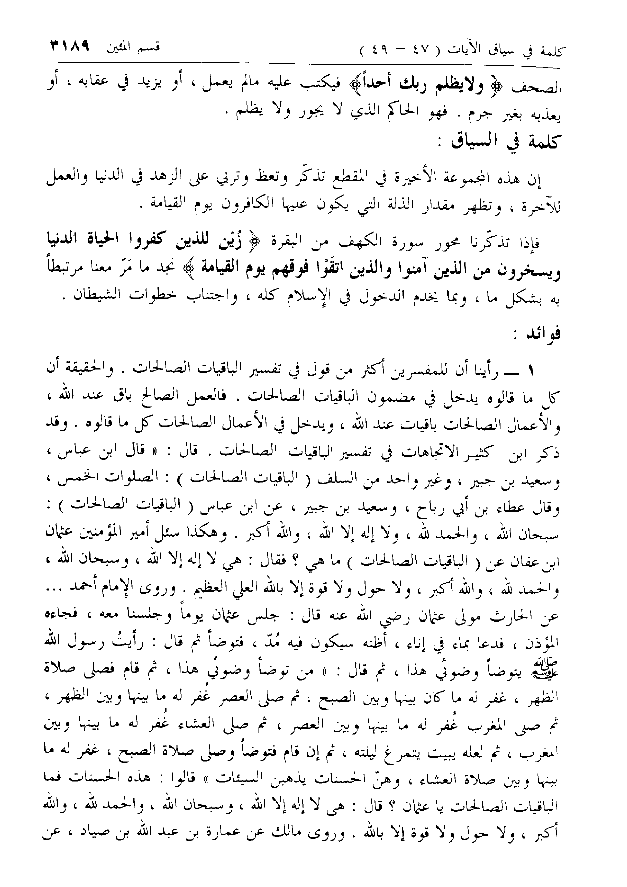 1 - [أقوال المفسرين في تفسير الْباقِياتُ الصَّالِحاتُ]