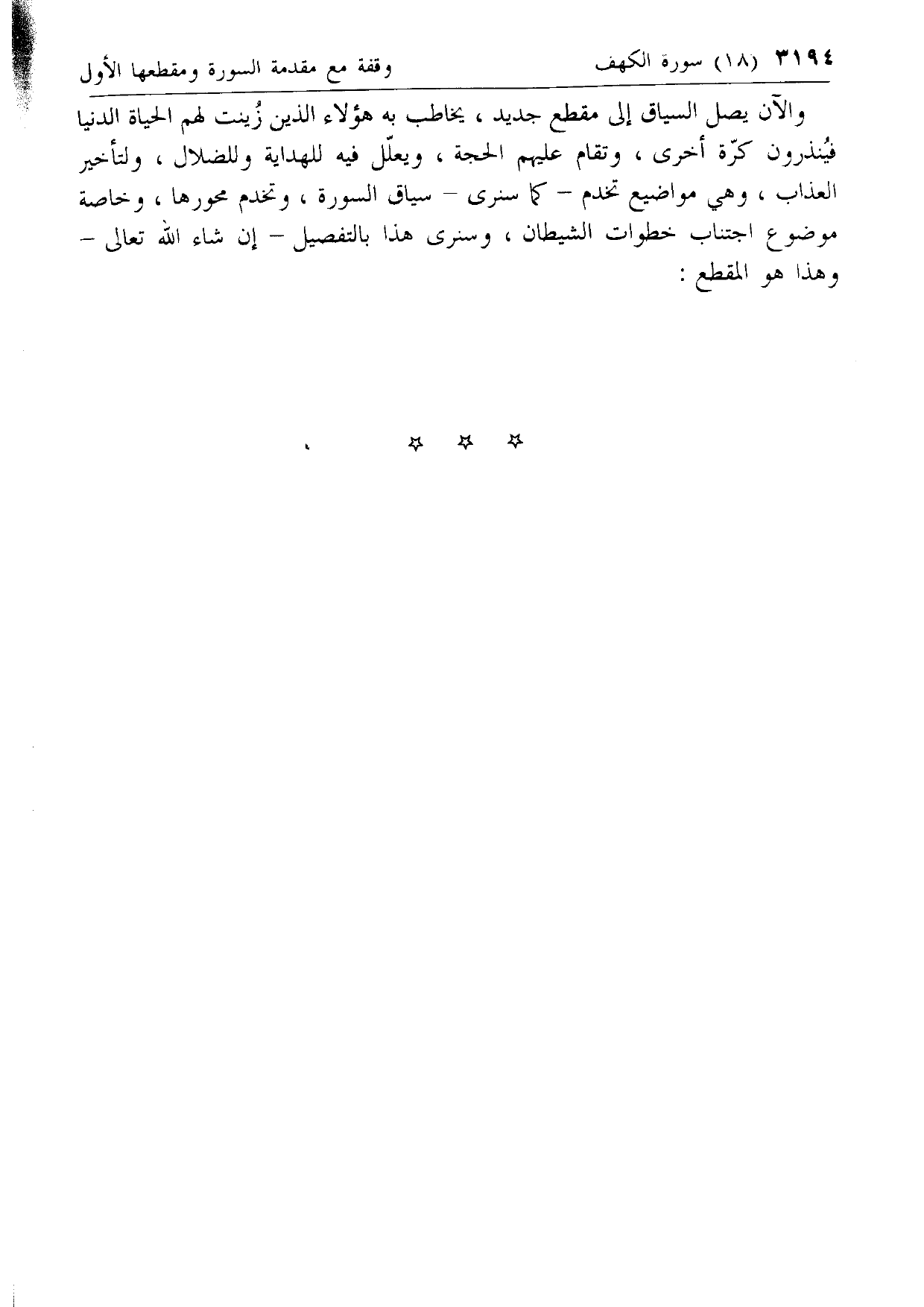 والآن يصل السياق إلى مقطع جديد، يخاطب به هؤلاء الذين زينت لهم الحياة الدنيا فينذرون كرّة أخرى، وتقام عليهم الحجة، ويعلّل فيه للهداية وللضلال، ولتأخير العذاب، وهي مواضيع تخدم- كما سنرى- سياق السورة، وتخدم محورها، وخاصة موضوع اجتناب خطوات الشيطان، وسنرى هذا بالتفصيل- إن شاء الله تعالى- وهذا هو المقطع: