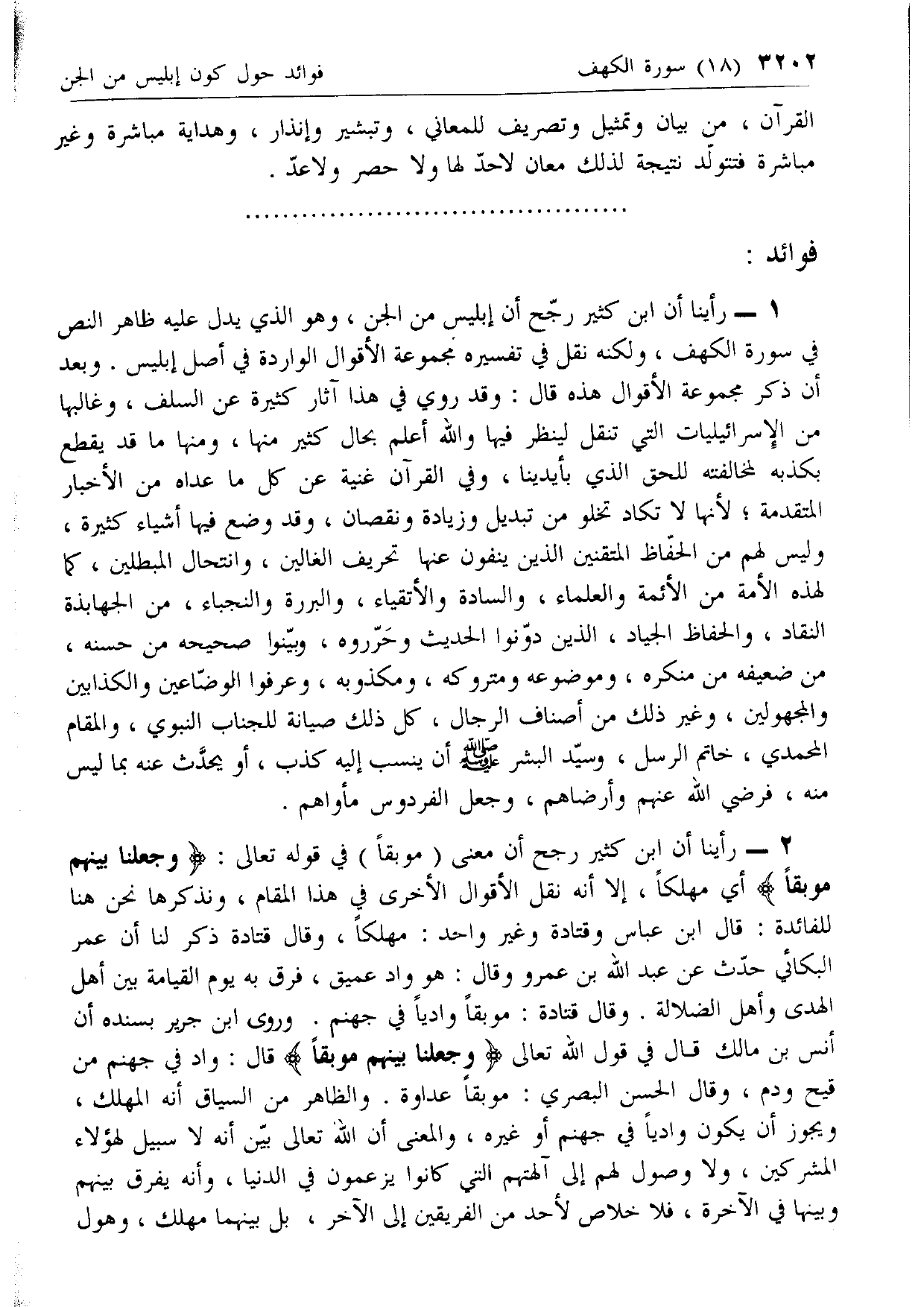 2 - [ما ذكره ابن كثير من أقوال في تفسير كلمة (موبقا) في آية وَجَعَلْنا بَيْنَهُمْ مَوْبِقاً]