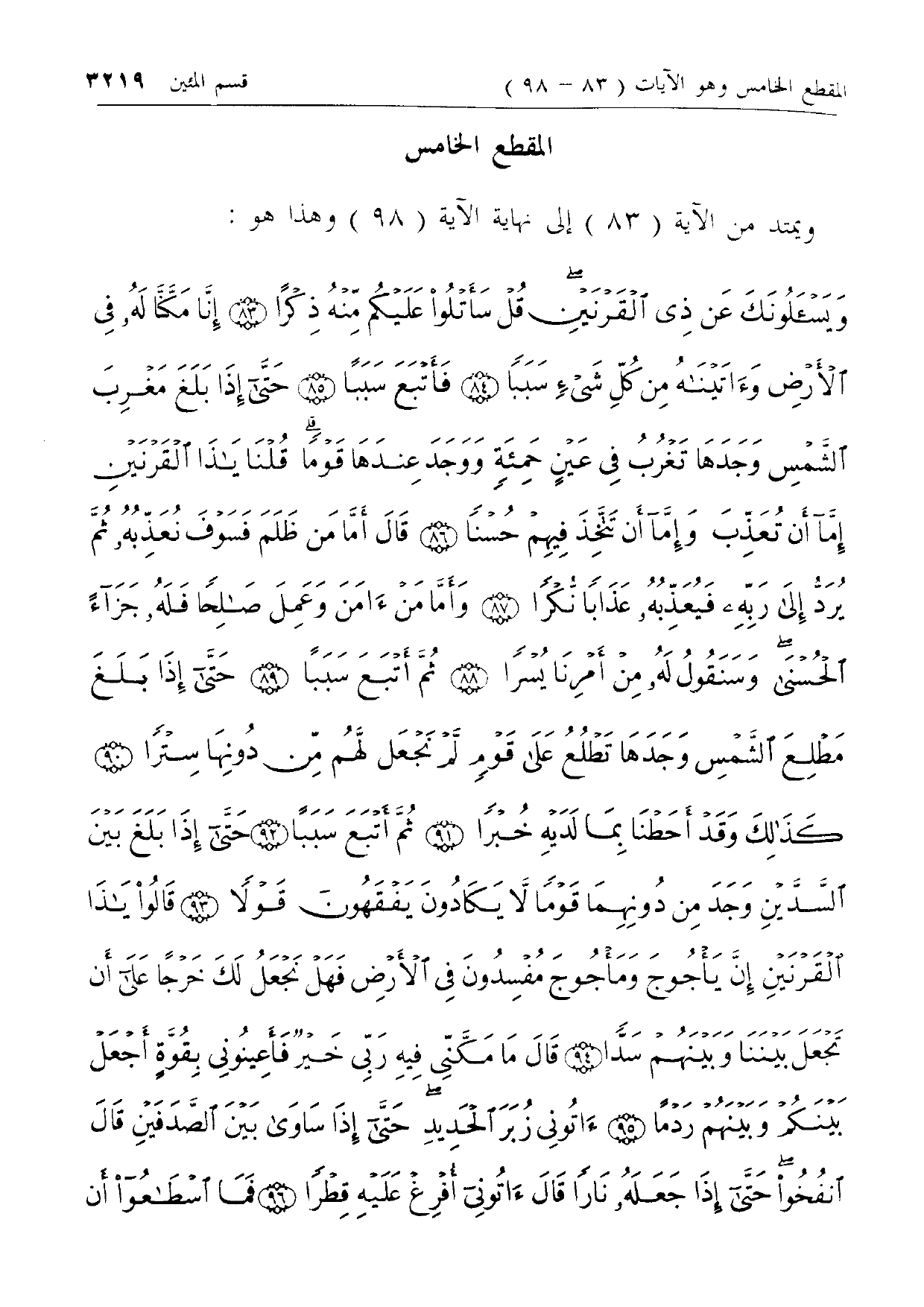 المقطع الخامس ويمتد من الآية (83) إلى نهاية الآية (98) وهذا هو: