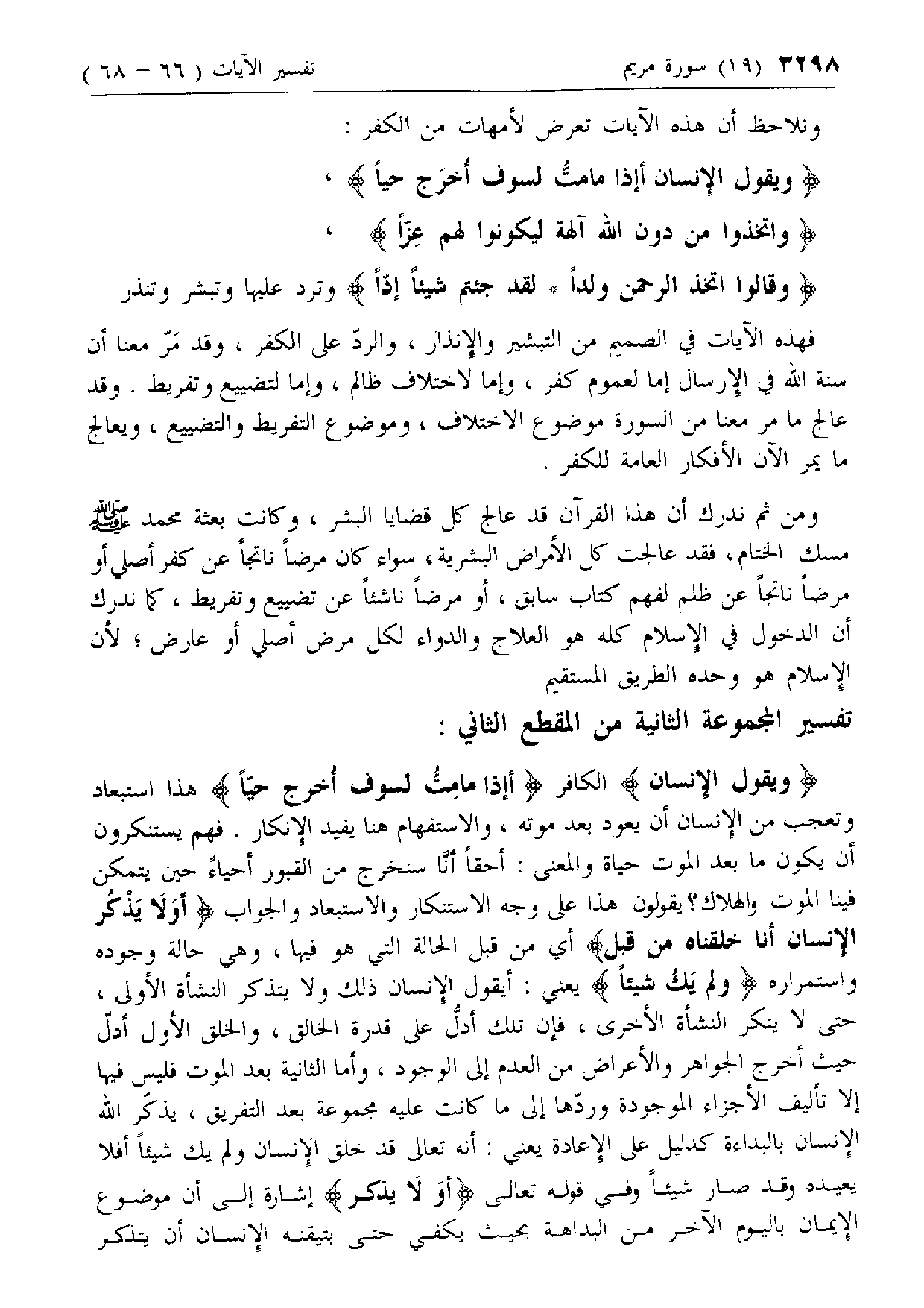 وَيَقُولُ الْإِنْسانُ أَإِذا ما مِتُّ لَسَوْفَ أُخْرَجُ حَيًّا،