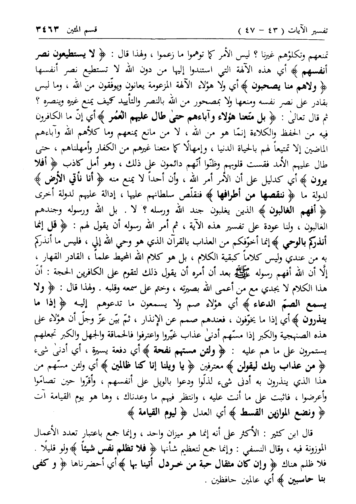 ثم قال تعالى: بَلْ مَتَّعْنا هؤُلاءِ وَآباءَهُمْ حَتَّى طالَ عَلَيْهِمُ الْعُمُرُ أي إن ما الكافرون فيه من الحفظ والكلاءة إنما هو من الله، لا من مانع يمنعهم وما كلأهم الله وآباءهم الماضين إلا تمتيعا لهم بالحياة الدنيا، وإمهالا كما متعنا غيرهم من الكفار وأمهلناهم، حتى طال عليهم الأمد فقست قلوبهم وظنوا أنهم دائمون على ذلك، وهو أمل كاذب أَفَلا يَرَوْنَ أي كدليل على أن الأمر أمر الله، وأن أحدا لا يمنع منه أَنَّا نَأْتِي الْأَرْضَ لدولة ما نَنْقُصُها مِنْ أَطْرافِها فنقلص سلطانهم عليها، إدالة عليهم لدولة أخرى أَفَهُمُ الْغالِبُونَ الذين يغلبون جند الله ورسله؟ لا. بل الله ورسوله وجندهم الغالبون، ولنا عودة على تفسير هذه الآية،