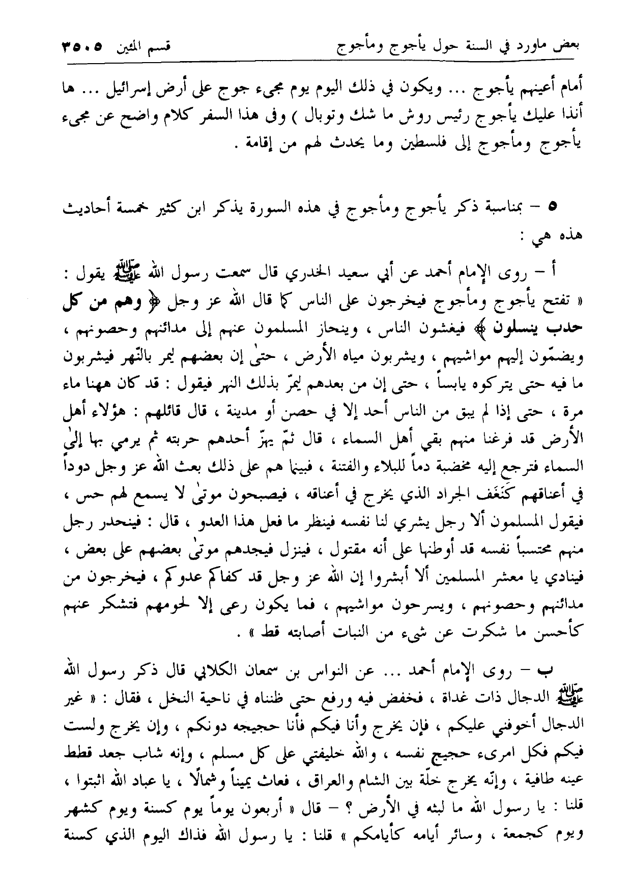 5 - بمناسبة ذكر يأجوج ومأجوج في هذه السورة يذكر ابن كثير خمسة أحاديث هذه هي: