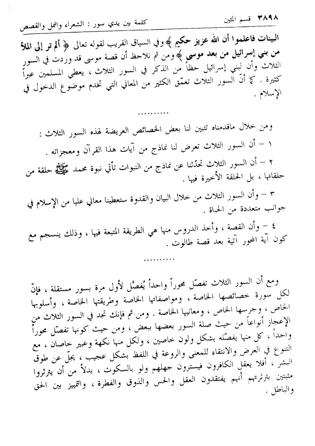 الْبَيِّناتُ فَاعْلَمُوا أَنَّ اللَّهَ عَزِيزٌ حَكِيمٌ وفي السياق القريب لقوله تعالى أَلَمْ تَرَ إِلَى الْمَلَإِ مِنْ بَنِي إِسْرائِيلَ مِنْ بَعْدِ مُوسى ومن ثم نلاحظ أن قصة موسى قد وردت في السور الثلاث وأن لبني إسرائيل حظا من الذكر في السور الثلاث، يعطي المسلمين عبرا كثيرة. كما أن السور الثلاث تعمق الكثير من المعاني التي تخدم موضوع الدخول في الإسلام.
