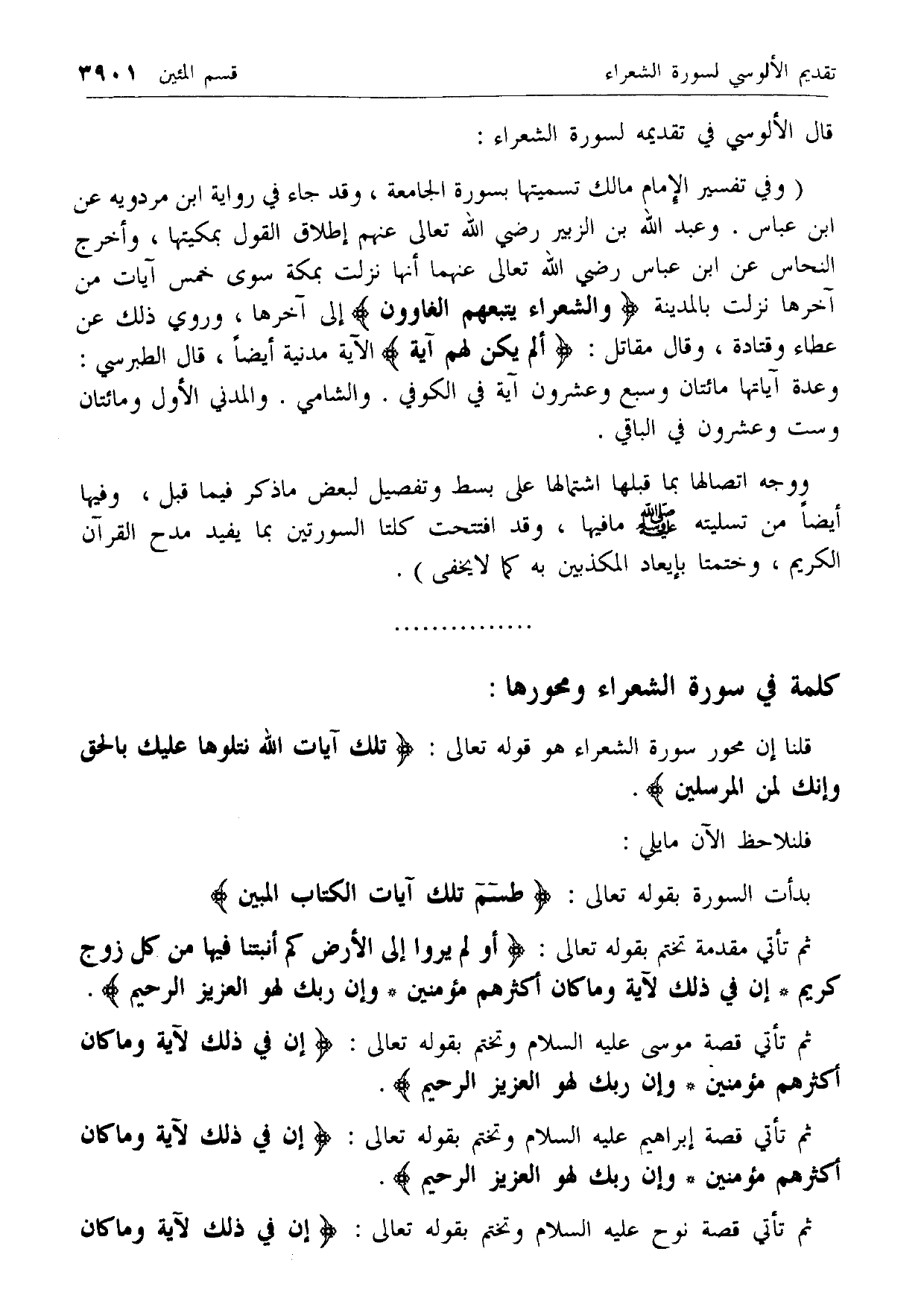 [قال الألوسي في تقديمه لسورة الشعراء:]