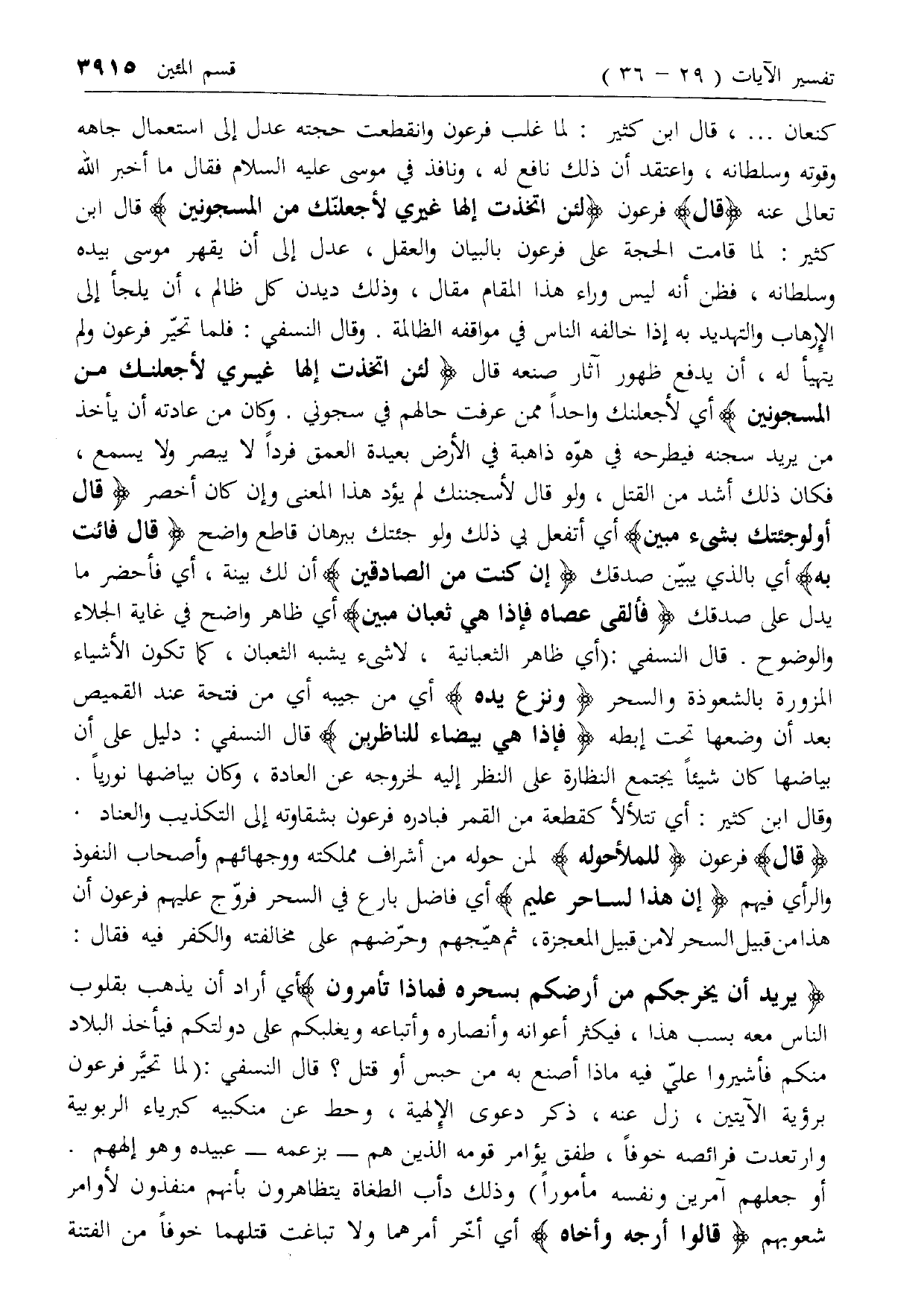 كنعان ... ، قال ابن كثير: لما غلب فرعون وانقطعت حجته عدل إلى استعمال جاهه وقوته وسلطانه، واعتقد أن ذلك نافع له، ونافذ في موسى عليه السلام