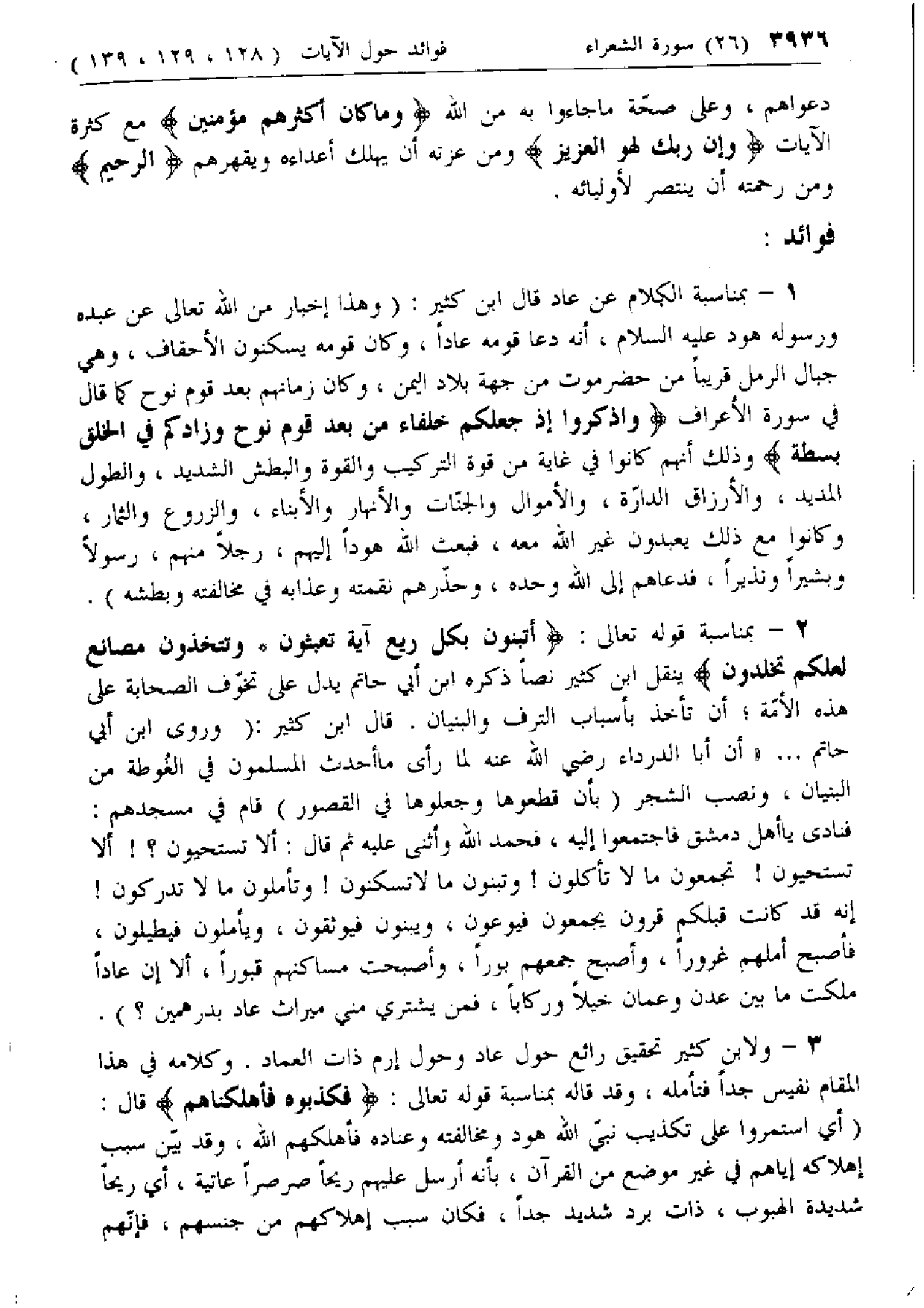 3 - ولابن كثير تحقيق رائع حول عاد وحول إرم ذات العماد. وكلامه في هذا المقام نفيس جدا فتأمله، وقد قاله بمناسبة قوله تعالى: فَكَذَّبُوهُ فَأَهْلَكْناهُمْ قال: