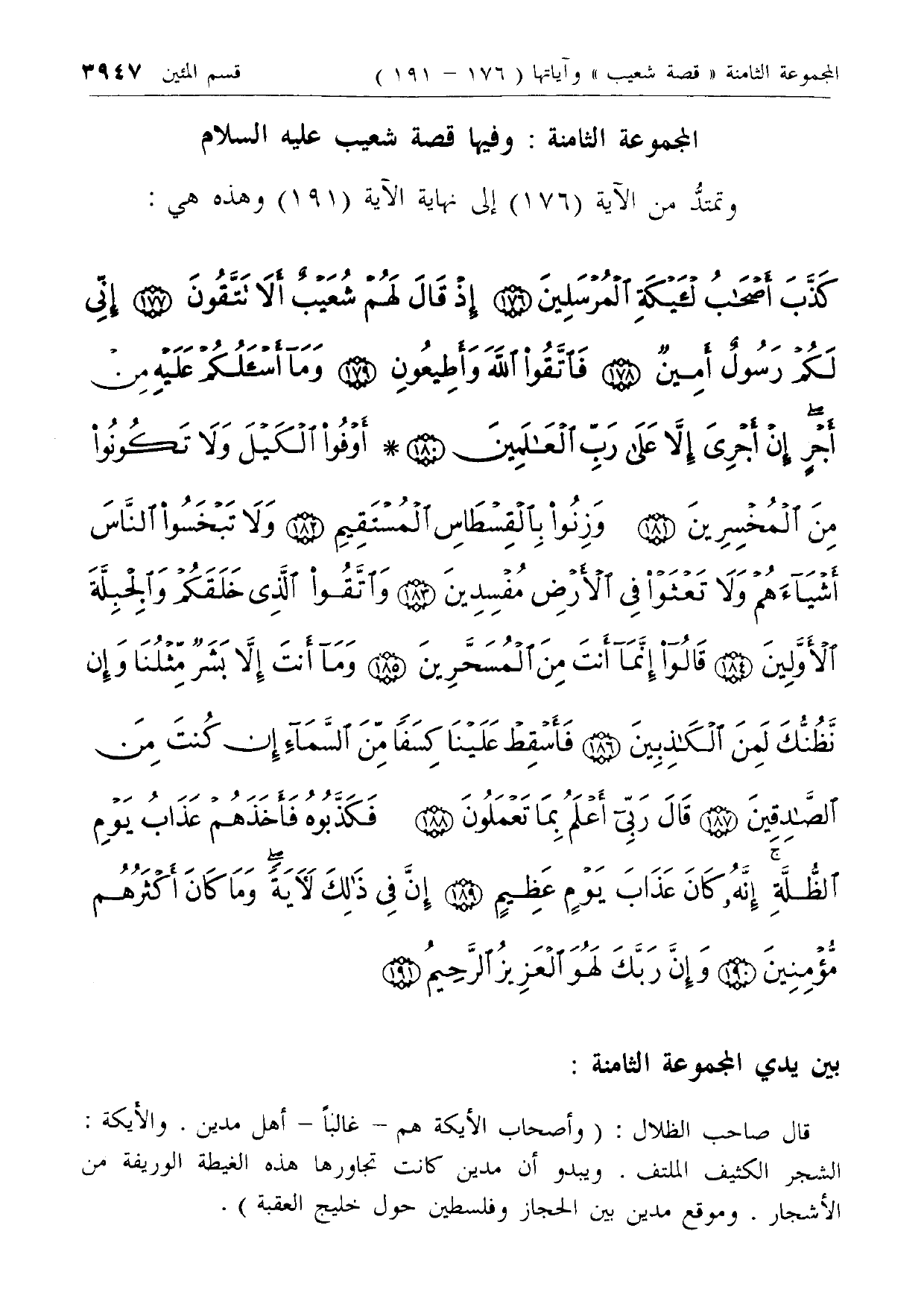 المجموعة الثامنة: وفيها قصة شعيب عليه السلام