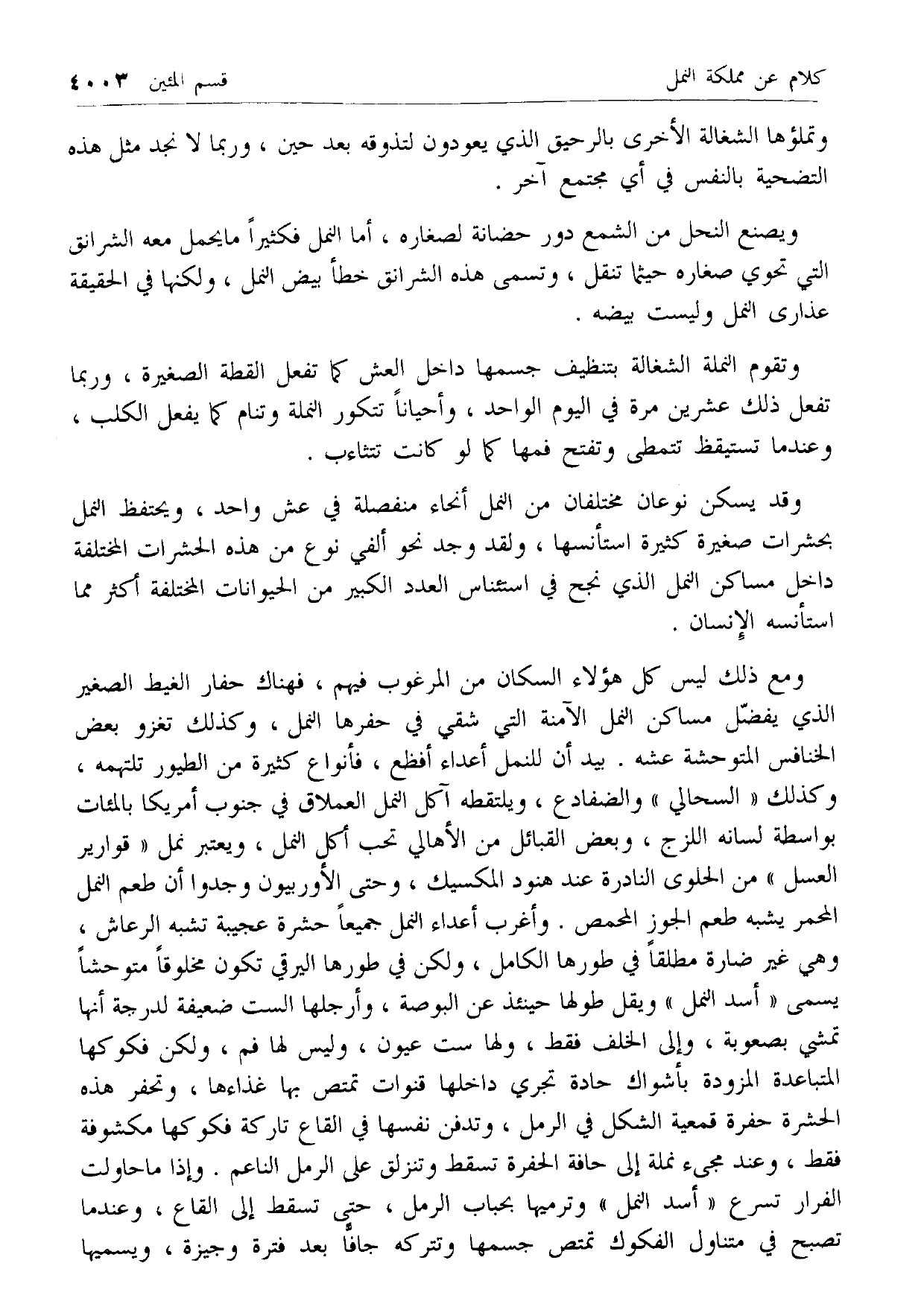 وتملؤها الشغالة الأخرى بالرحيق الذي يعودون لتذوقه بعد حين، وربما لا نجد مثل هذه التضحية بالنفس في أي مجتمع آخر.