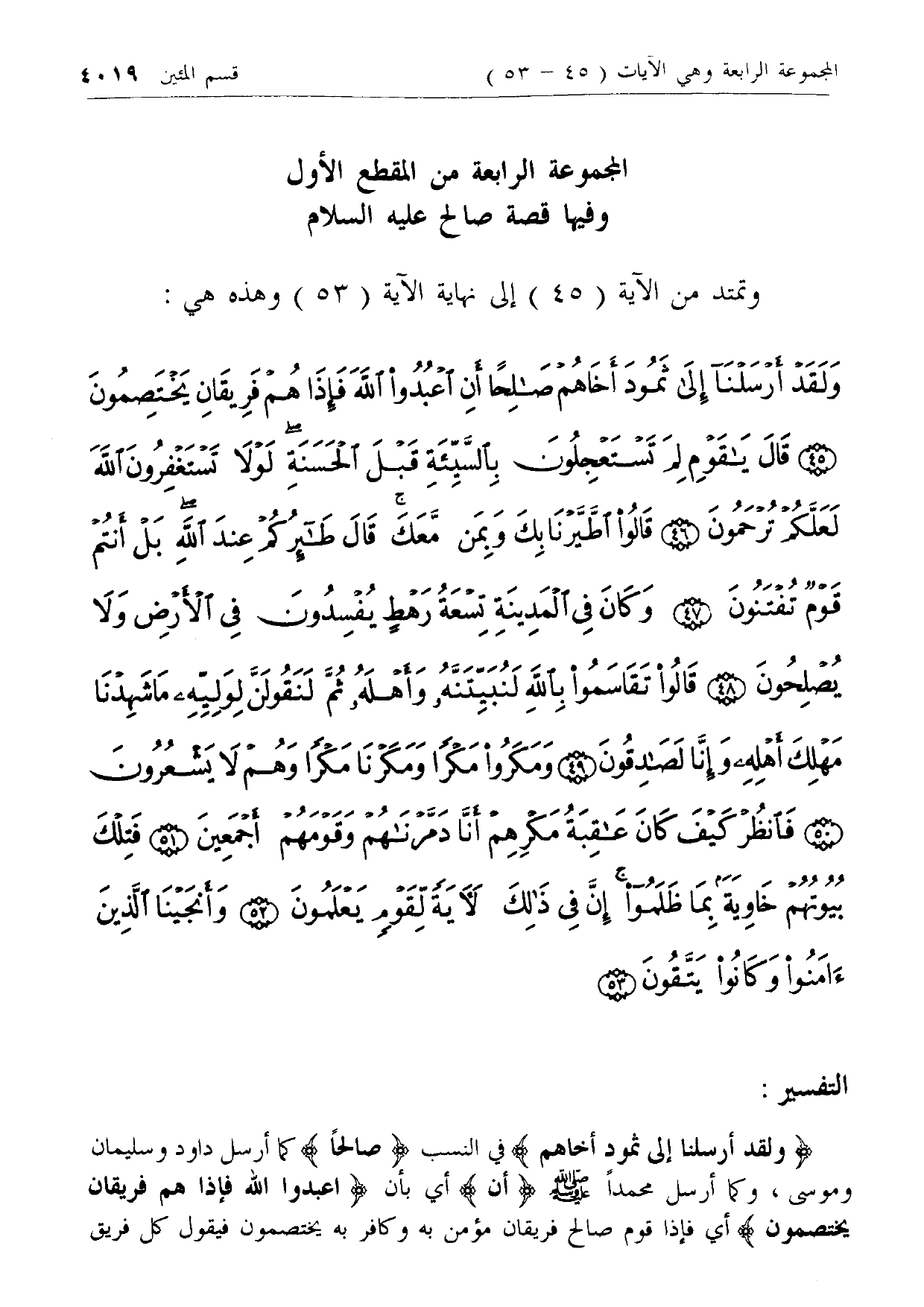 المجموعة الرابعة من المقطع الأول وفيها قصة صالح عليه السلام