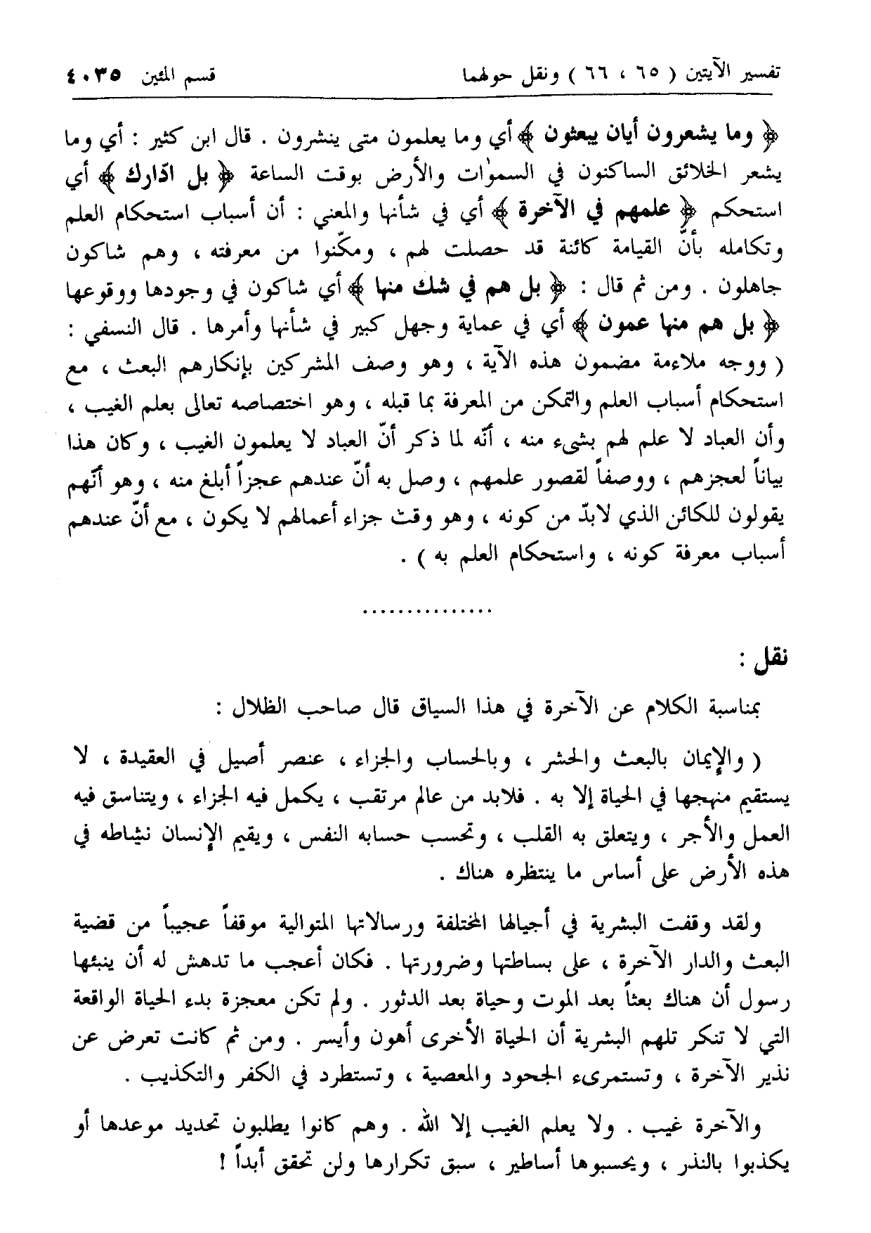 بمناسبة الكلام عن الآخرة في هذا السياق قال صاحب الظلال: