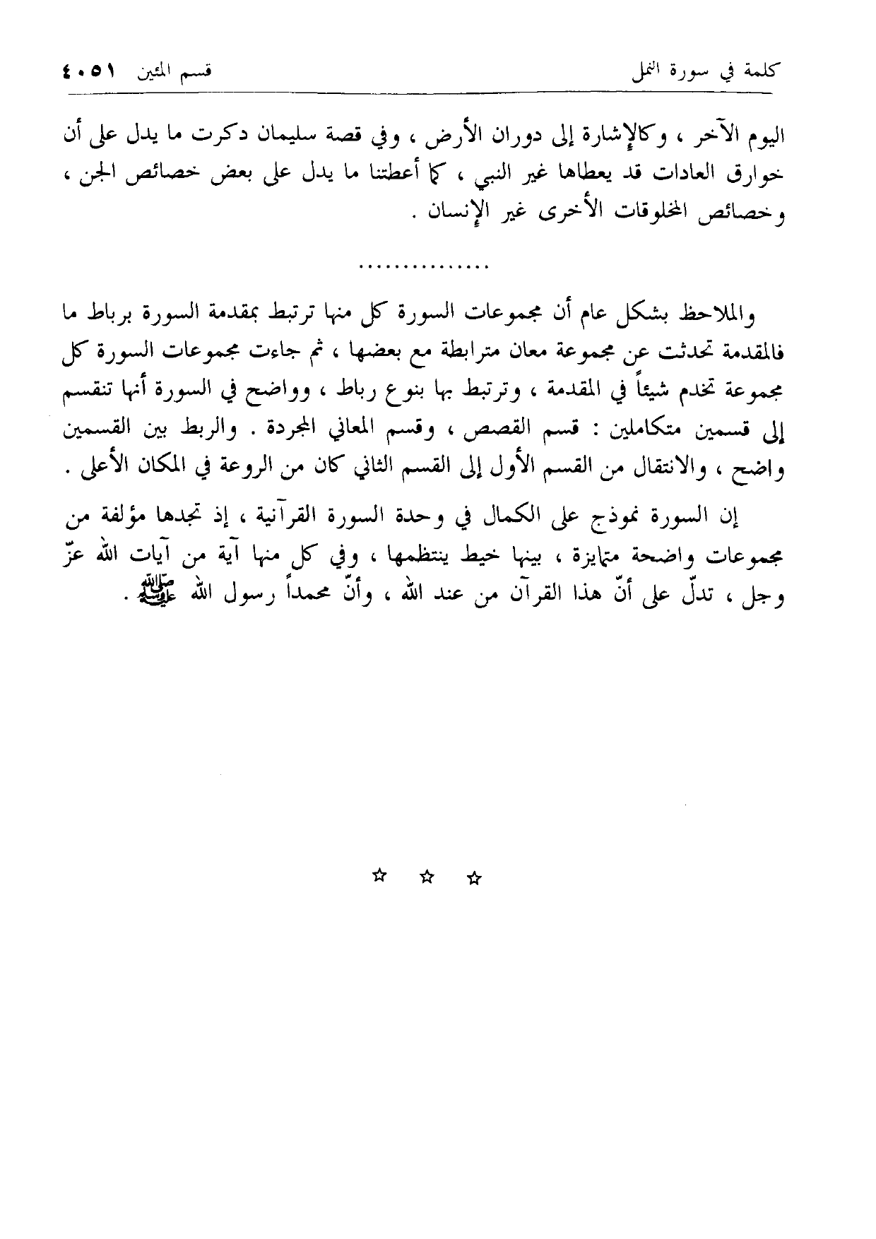 اليوم الآخر، وكالإشارة إلى دوران الأرض، وفي قصة سليمان ذكرت ما يدل على أن خوارق العادات قد يعطاها غير النبي، كما أعطتنا ما يدل على بعض خصائص الجن، وخصائص المخلوقات الأخرى غير الإنسان.