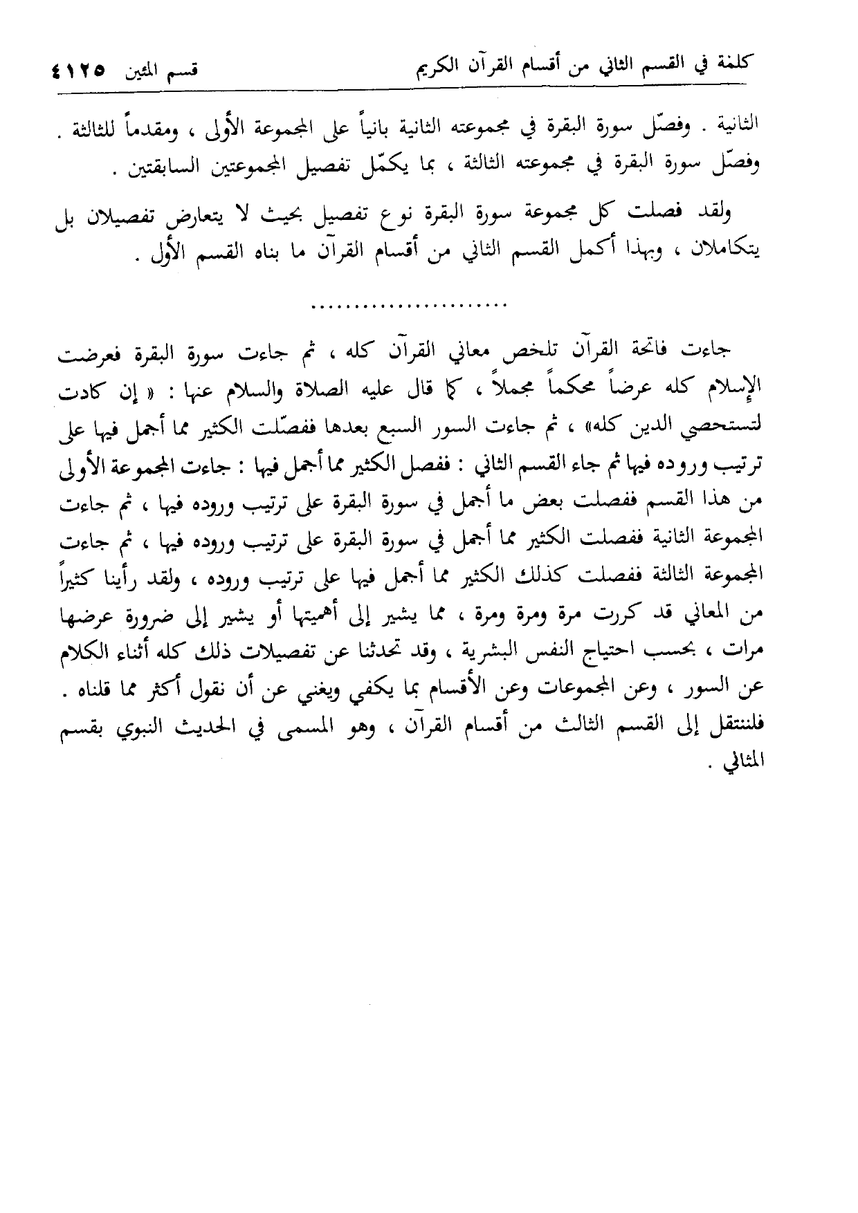 فلننتقل إلى القسم الثالث من أقسام القرآن، وهو المسمى في الحديث النبوي بقسم المثاني.