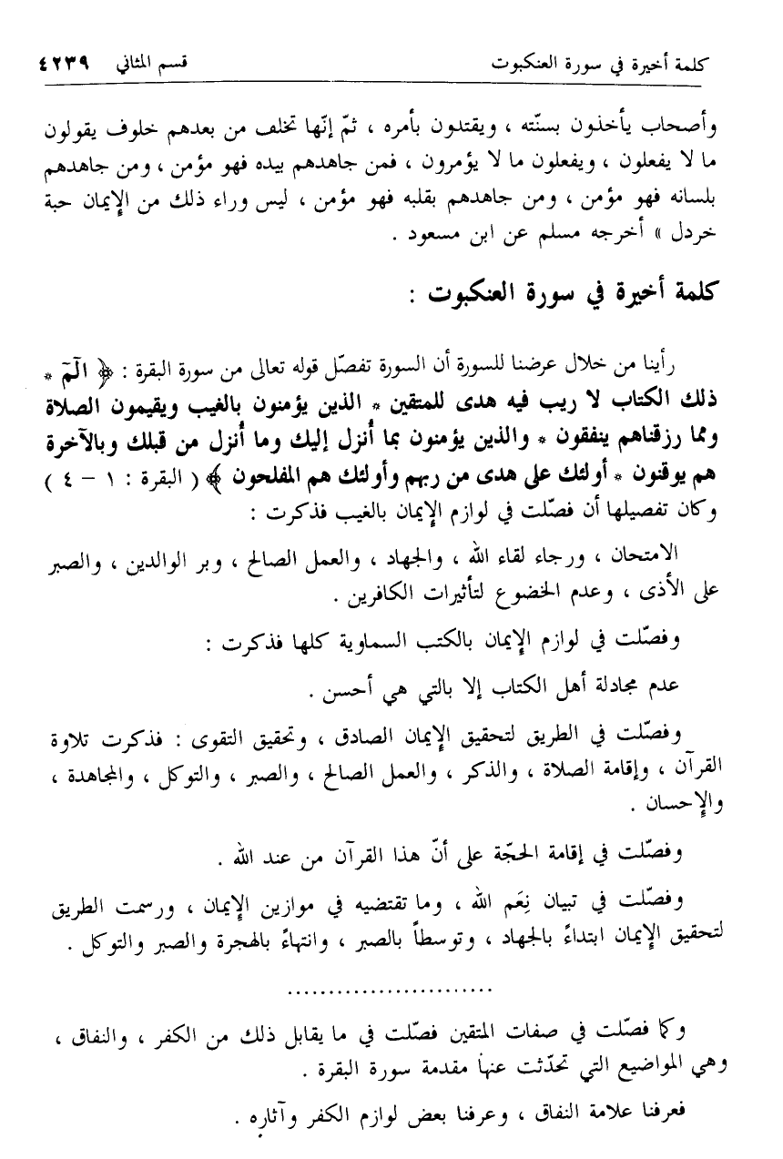 وفصّلت في تبيان نعم الله، وما تقتضيه في موازين الإيمان، ورسمت الطريق لتحقيق الإيمان ابتداء بالجهاد، وتوسطا بالصبر، وانتهاء بالهجرة والصبر والتوكل.